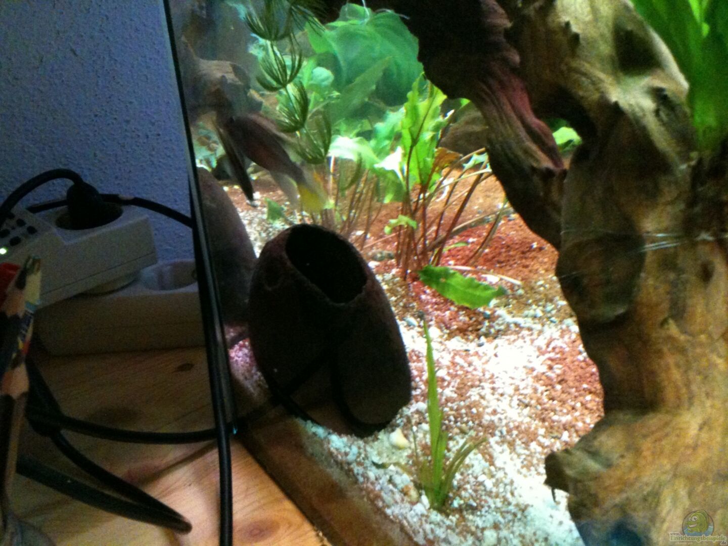 3 Mangrovenhölzer 1 Moopaniwurzel 2 Kokusnusshälften 1 Tontopf ca. 0.5kg Steine 2 Seemandelbaumblätter 7 Erlenzapfen eine 3-D Rückwand (hinter dem Becken) Die Fische finden sowohl künstliche Höhlen als auch "natürliche" Höhelen unter den Wurzeln, welche durch etwas arbeit vergrö??ert werden können.