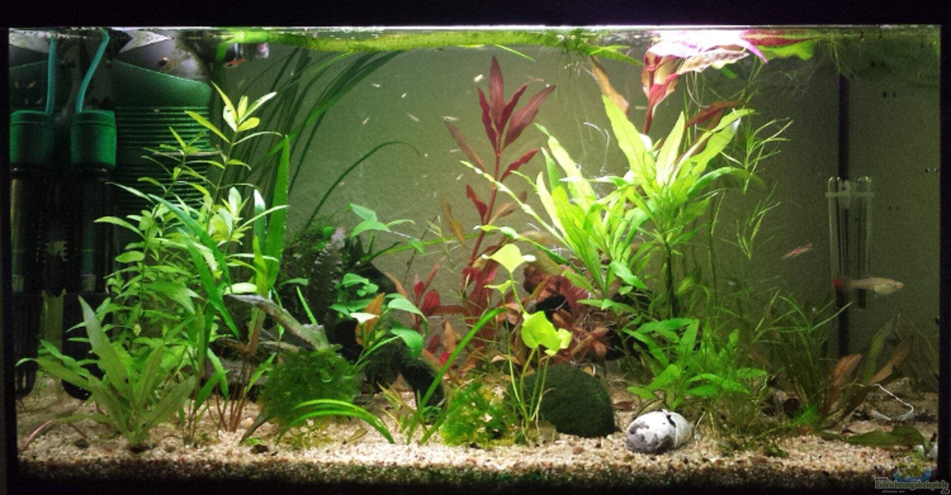 Normales Vollglas-Aquarium - - - Die Gesamt-Laufzeit des Aq. ist unklar. Das Aquarium habe ich gebraucht übernommen, samt Pflanzen, Schnecken und Endler-Guppys. Ich habe es neu eingerichtet und es läuft bei mir seit dem 15/07/2013. Amanos und Otos kamen dazu. Die Ohrgitterharnischwelse lebten vorher im Nano-Becken "1001 Shades of Green", einem zu engen Daheim ...