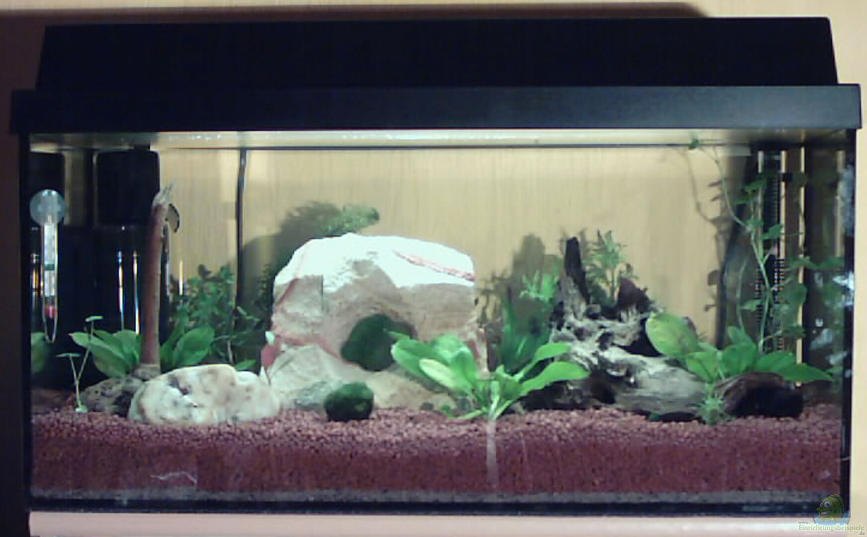 Juwel-Standardbecken, läuft seit 26.03.2006 Rückwand: Styroporplatte(mit Acryl-Abtönfarbe gerollt, selbstgemischtes ´Schwimmbadblau´) hinter der Rückwand montiert