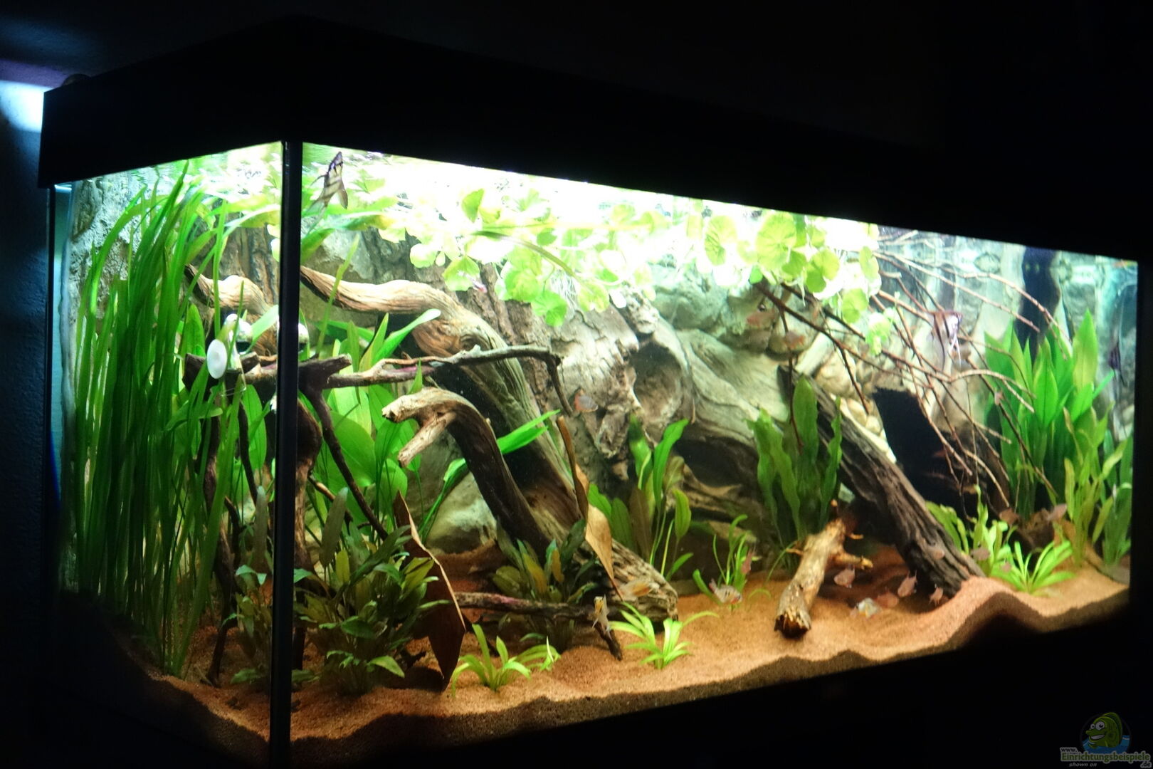 Es handelt sich hierbei um ein JUWEL Rio 240, Der Bioflow Innenfilter wurde entfernt und durch einen Eheim Aussenfilter ersetzt. Die Hinter- und rechte Seitenscheibe wurde mit einer schwarzen Folie abgeklebt. Nachdem das Aquarium ca 1 Jahr stabil gelaufen ist, wurde dies vor kurzem komplett umgebaut und befindet sich nun wieder im Aufbau.