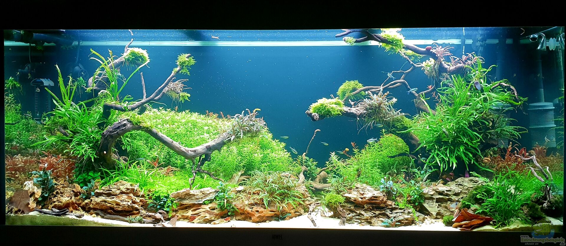 Aquarium aufgelöst, nur noch als Beispiel... Es handelt sich um ein Juwel Rio 450 Aquarium mit Multilux LED Beleuchtung. Eine 3 mm Plexiglas Platte wurde auf Aquarienboden verklebt um die punktuelle Belastung durch Spitze Steine zu verringern. Aufgerüstet um eine weitere Multilux LED Leuchteinheit.