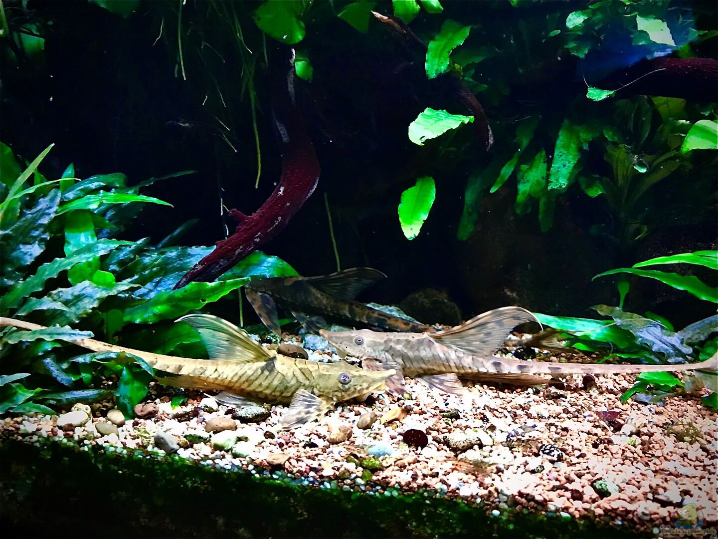 Der Besatz: 20 Blutsalmler 30 Rotkopfsalmler 3 Netzschmerlen 4 siamesische Rüsselbarben 2 Sturisoma festivum 3 Sturisoma aureum 10 Corydoras sterbai 30 Amanogarnelen ca.50 Red Fire Garnelen 425, 3 TDS ;-)