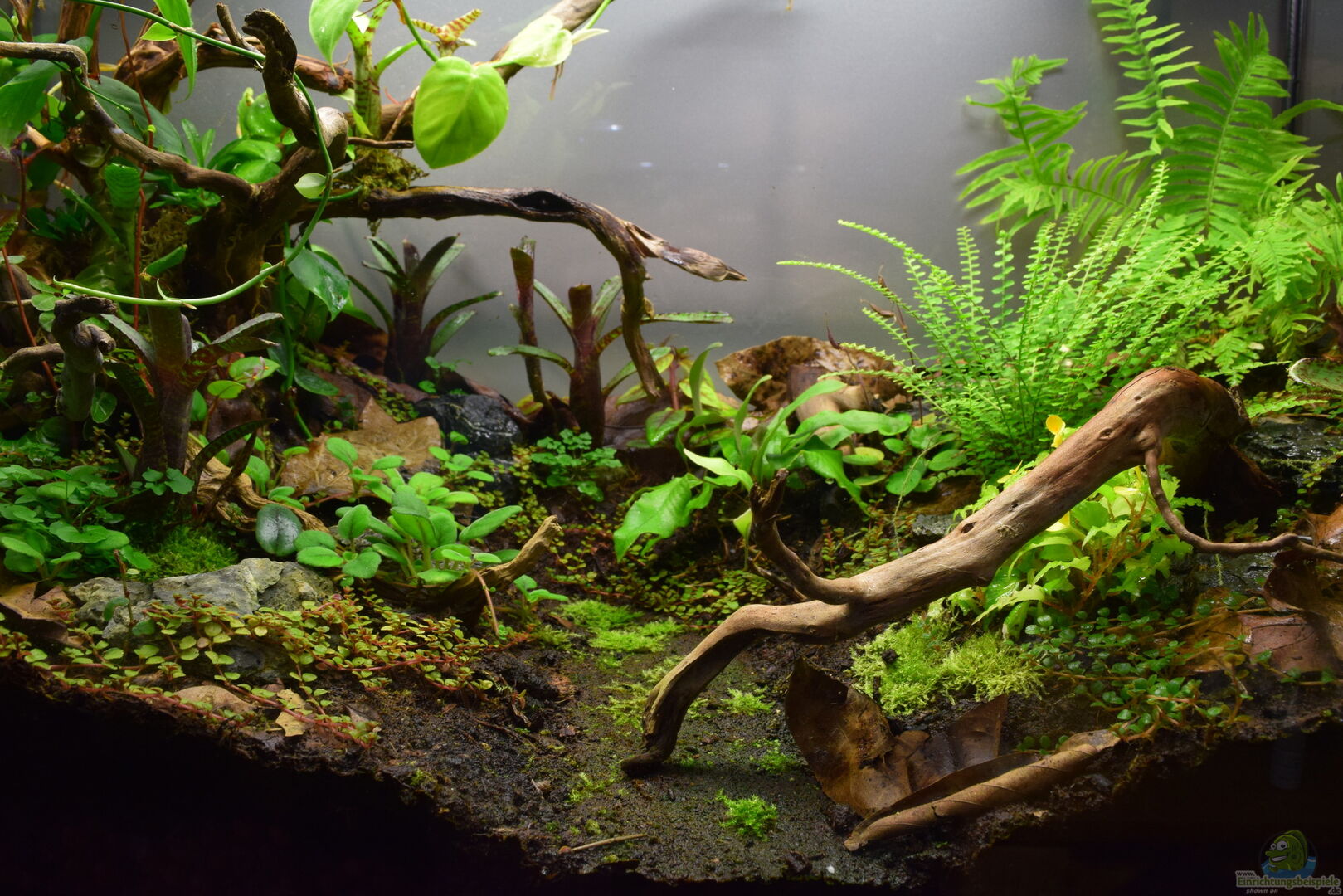 Die Besonderheit liegt darin, dass hier ein Aquarium als Terrarium gestaltet wird. Da kein Luftaustausch von unten nach oben durch Lüftungsschlitze stattfinden kann, wird hier mit PC-Lüftern gearbeitet, um dies zu bewerkstelligen. Der Gedanke war, freie Sicht auf das Terrarium zu haben, ohne störende Schiebscheiben, Lüftungsschlitze o.ä.