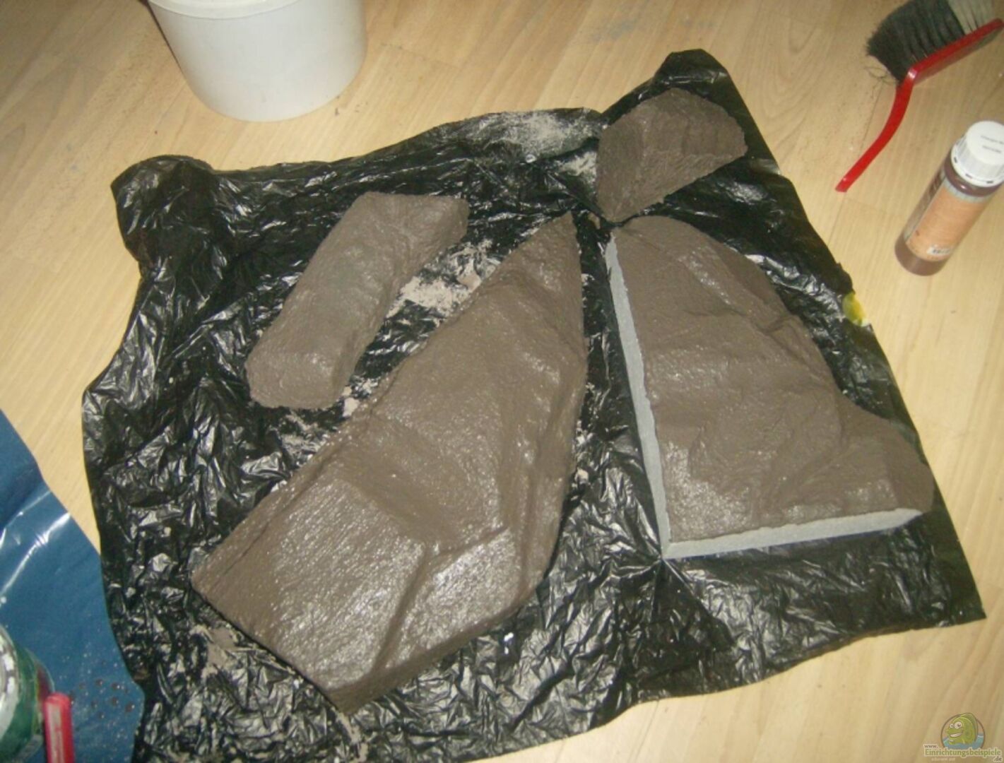 selbstgebaute Steine( Module aus Trasszement) 2 Wochen gewässert! verschiedene Algenarten haben die Steine schon besiedelt.