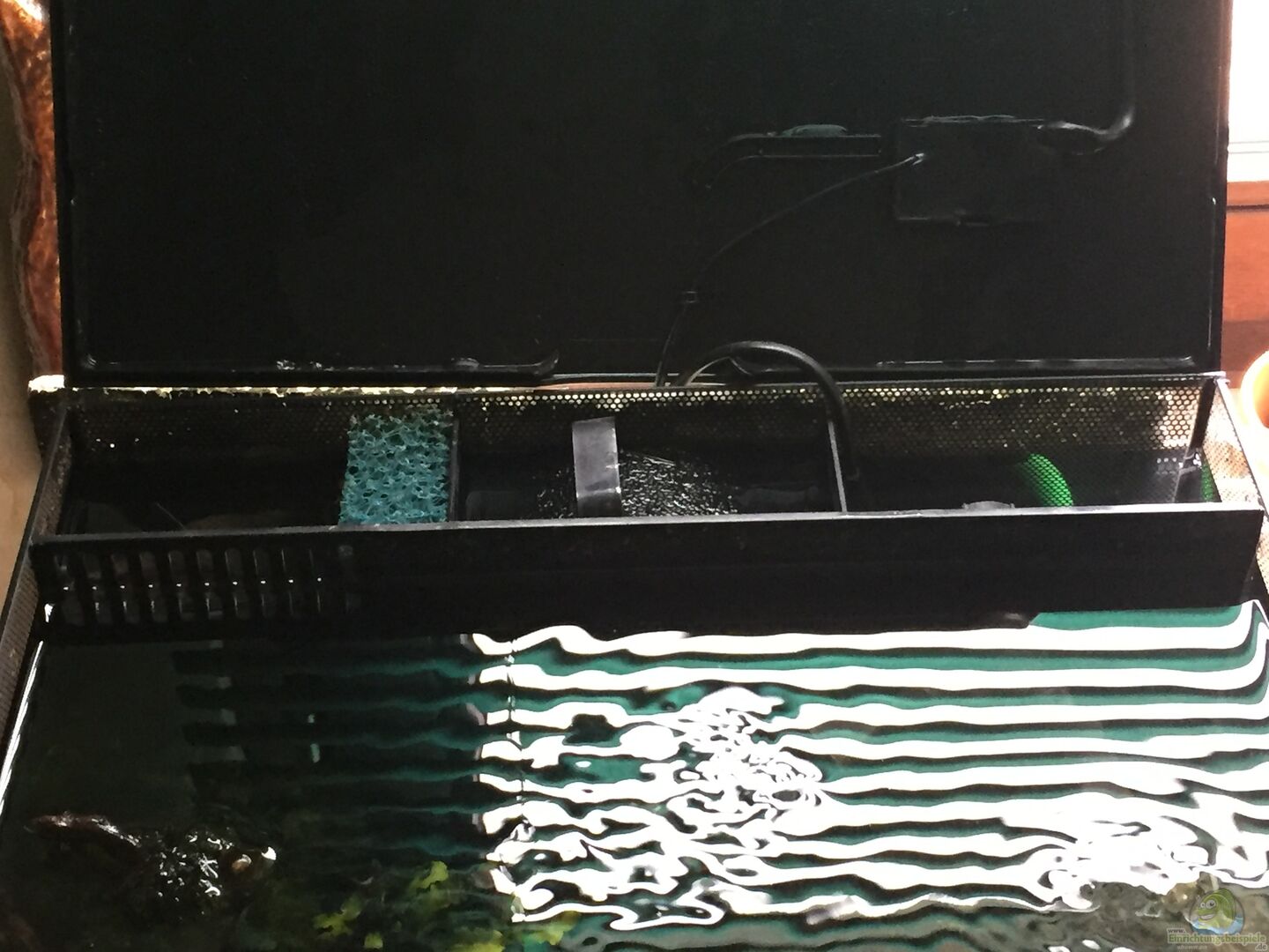 erste Filterkammer mit Abschirmung zur zweiten (Filterschwamm)