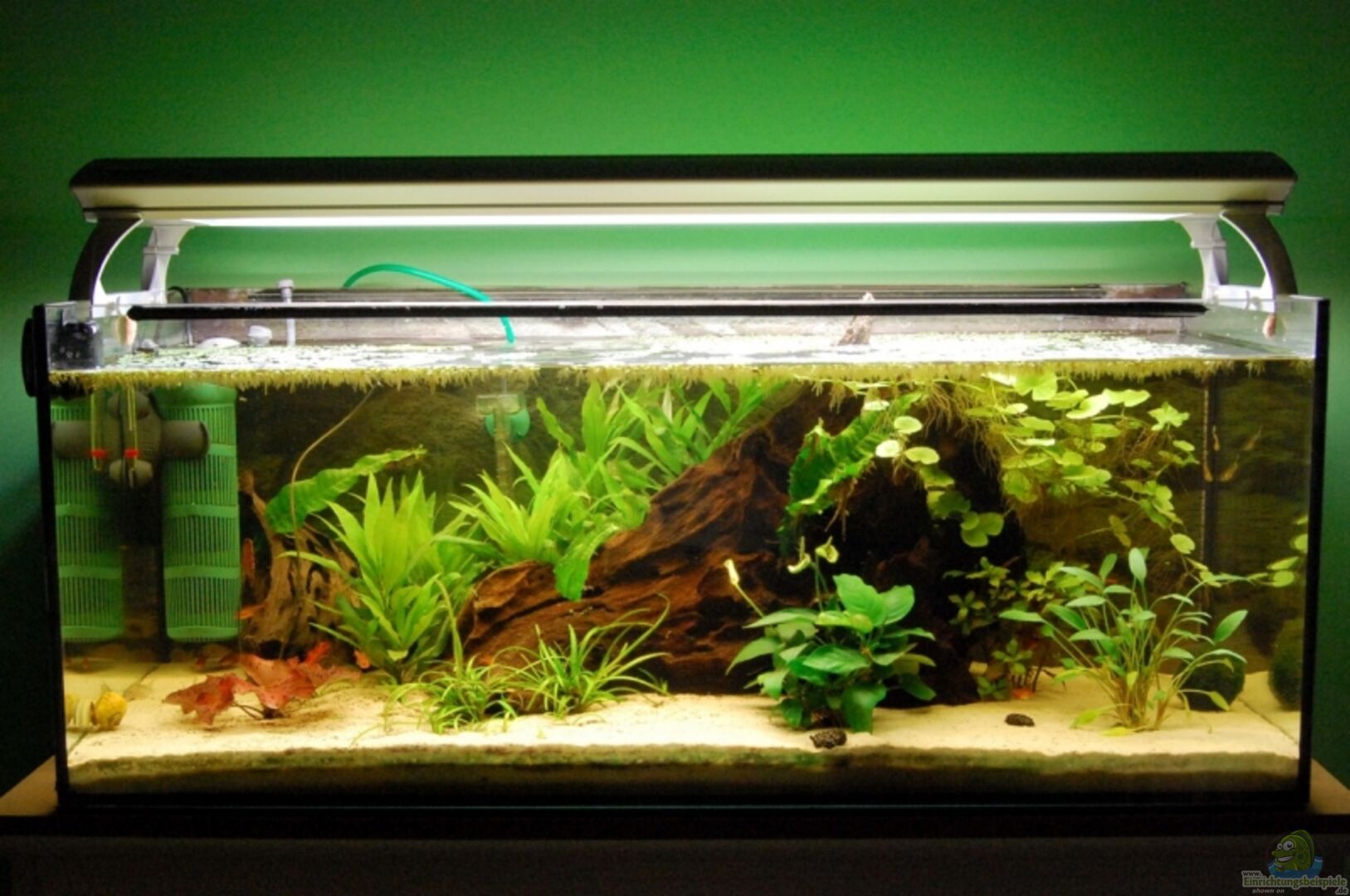 Offenes Becken mit Rückwandfolie. Es steht auf einer Ikea-Kommode, die mit Tischlerplatten als Rückwand und Unterplatte verstärkt wurde. Au??erdem habe ich zusätzliche Querstreben unter der Auflageplatte und am Boden eingebaut. Hält einwandfrei. Zwischen Unterplatte und Becken ist noch eine Schaummatte für etwaige Ungleichheiten.