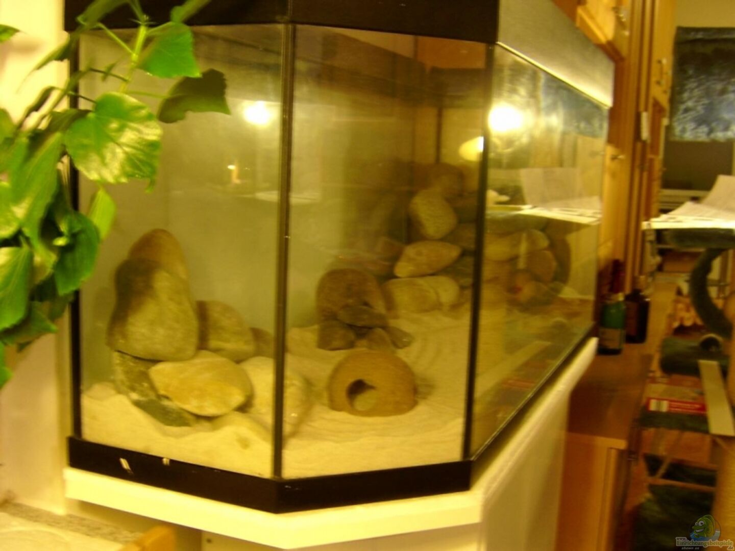 Es ist eine veraltete Juwelausführung der Sorte ´Panaorama´. Der Schrank ist marke Eigenbau, genau wie die Abdeckung. Katzentraum, weil das Aquarium den Platz des Kratzbaumes ersetzt in Hinsicht auf den Ausblick zum Vogelhaus.