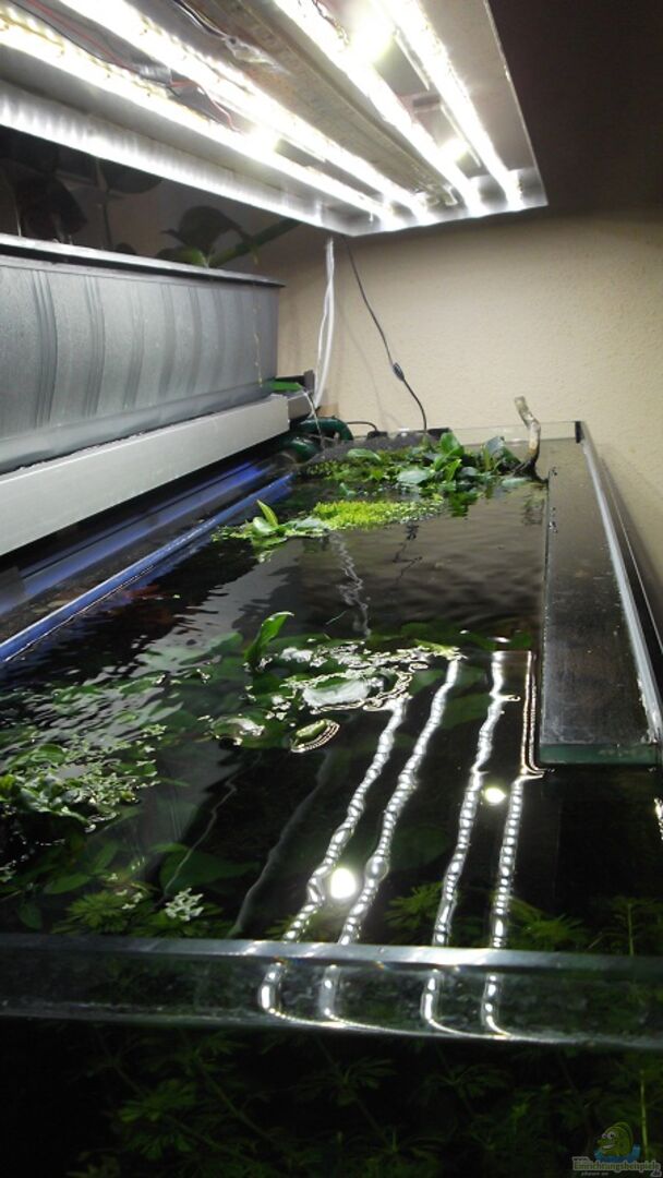 LED Beleuchtung mit Sonnenaufgang und -untergang. LED Hintergrundbeleuchtung. HMF mit Oberflächenabsaugung. Automatische regulierung des Wasserspiegels.