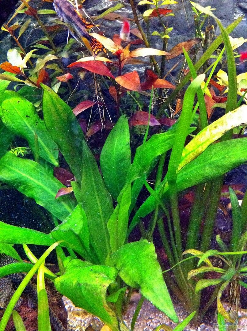 Hier findest du alle wichtigen Infos und viele Beispiele für die Bepflanzung eines Aquariums mit Echinodorus Tricolor (Dreifarbige Schwertpflanze).