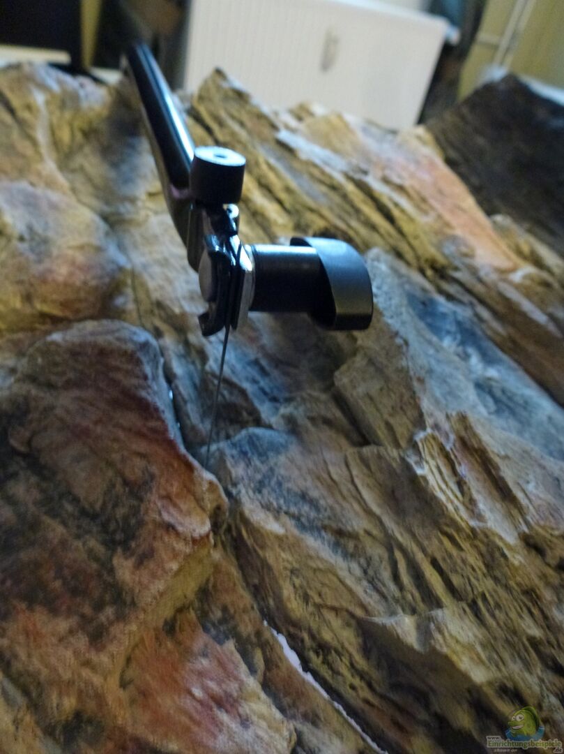 3d Rückwand O-Line Reliefstärke: ca. 2-8 cm Dahinter ist genügend Platz, um Filter, Heizer und weiteres Zubehör zu plazieren. Diese Rückwand wurde an den Seiten im Aquarium mit Klettband befestigt.