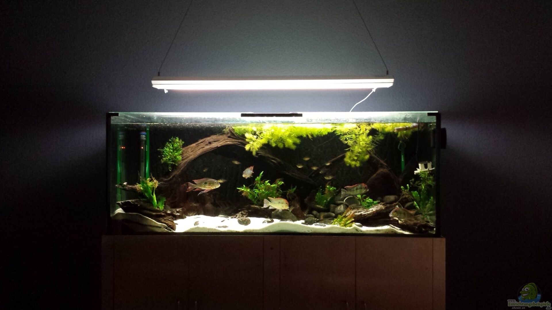 - Wulstverklebtes Aquarium mit breitem Mittelsteg, 10 mm Glasstärke - 4 angepasste Abdeckscheiben, hinten 2 x ca. 40 cm, vorn 2 x ca. 20 cm tief - Unterschrank angefertigt vom Metallbauer, feuerverzinktes Stahlgestell, Verkleidung mit Edelstahlplatten - Front mit vier Edelstahltüren; rechts gro??er Metallauszug zum Herausfahren des Topffilters
