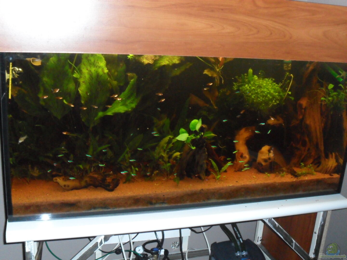 Becken von Aquariumbau Enningerloh Unterschrank Eigenbau aus 4 kantrohr 3, 5x3, 5 mit Küchen Arbeitsplatte Abdeckung ist Eigenbau aus Holz
