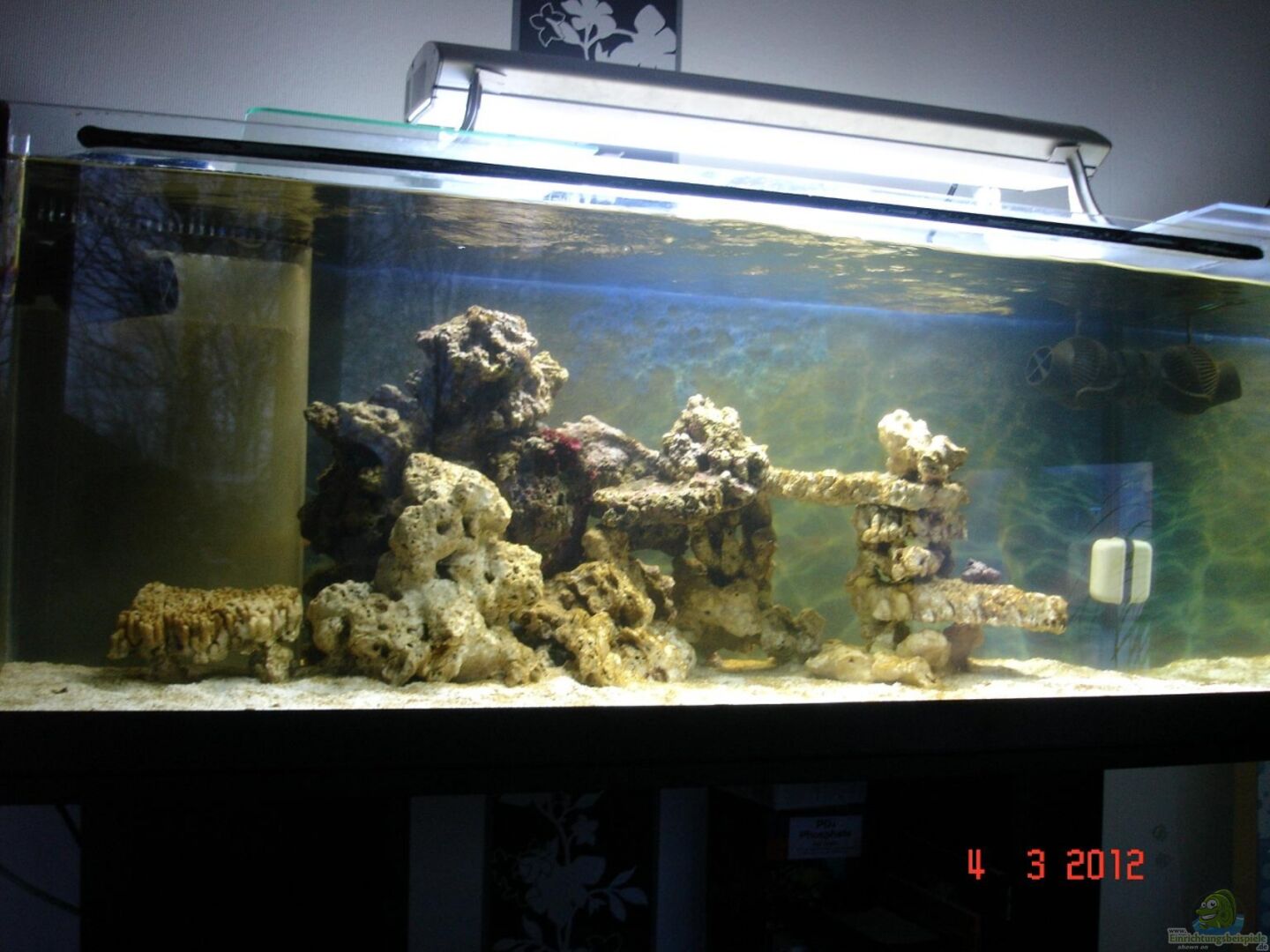Dies war einmal unser Sü??wasserbecken. Nach 8 Jahren haben wir daraus ein Meerwasserbecken gemacht. Es hat hinten links ein selbstgebautes Technikeck in dem der Abschäumer, der Heizstab, die automatische Wasserauffüllanlage und eine kleine Rückförderpumpe untergebracht sind. Für das Technikeck habe ich eine Plexiglasscheibe, mit Hilfe eines Hei??luftföns, zurechtgebogen. Ein Loch für die Rückförderpumpe hineingebohrt und den ??berlaufkamm angeklebt. Das Ganze dann mit Silikon im [...]