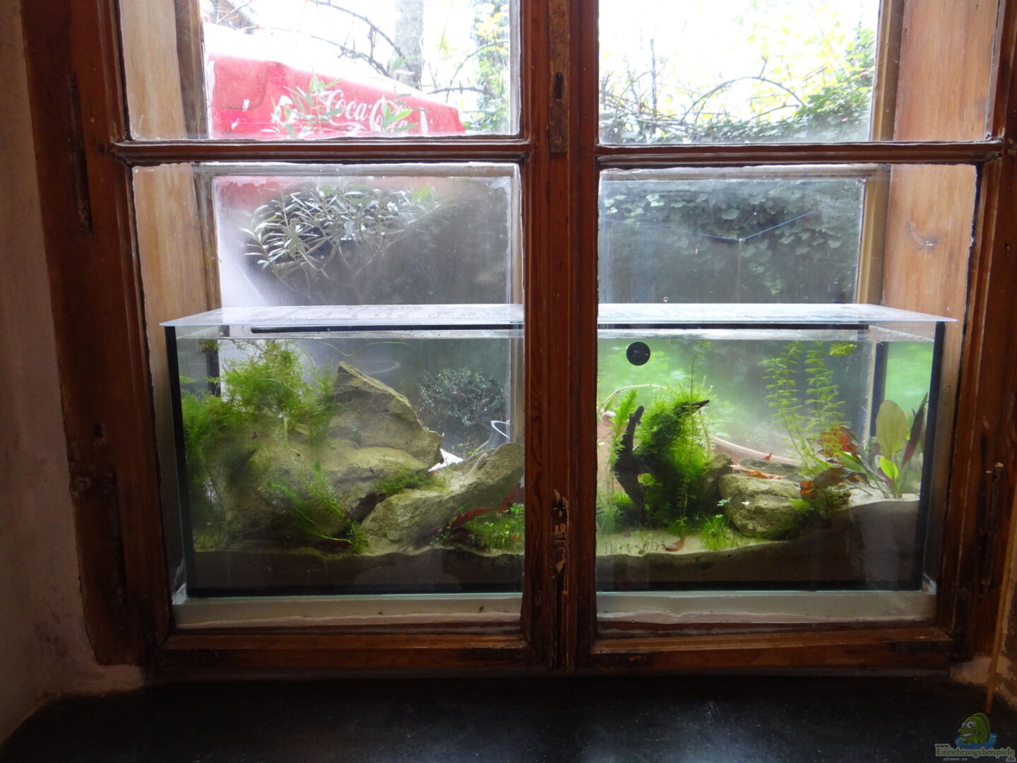 Das Becken ist ma??gefertigt, damit es genau ins Kastenfenster hineinpasst. Da die Fenster schon älter sind, wird das Aquarium sowohl jahreszeitlichen wie auch täglichen Temperaturschwankungen unterliegen.