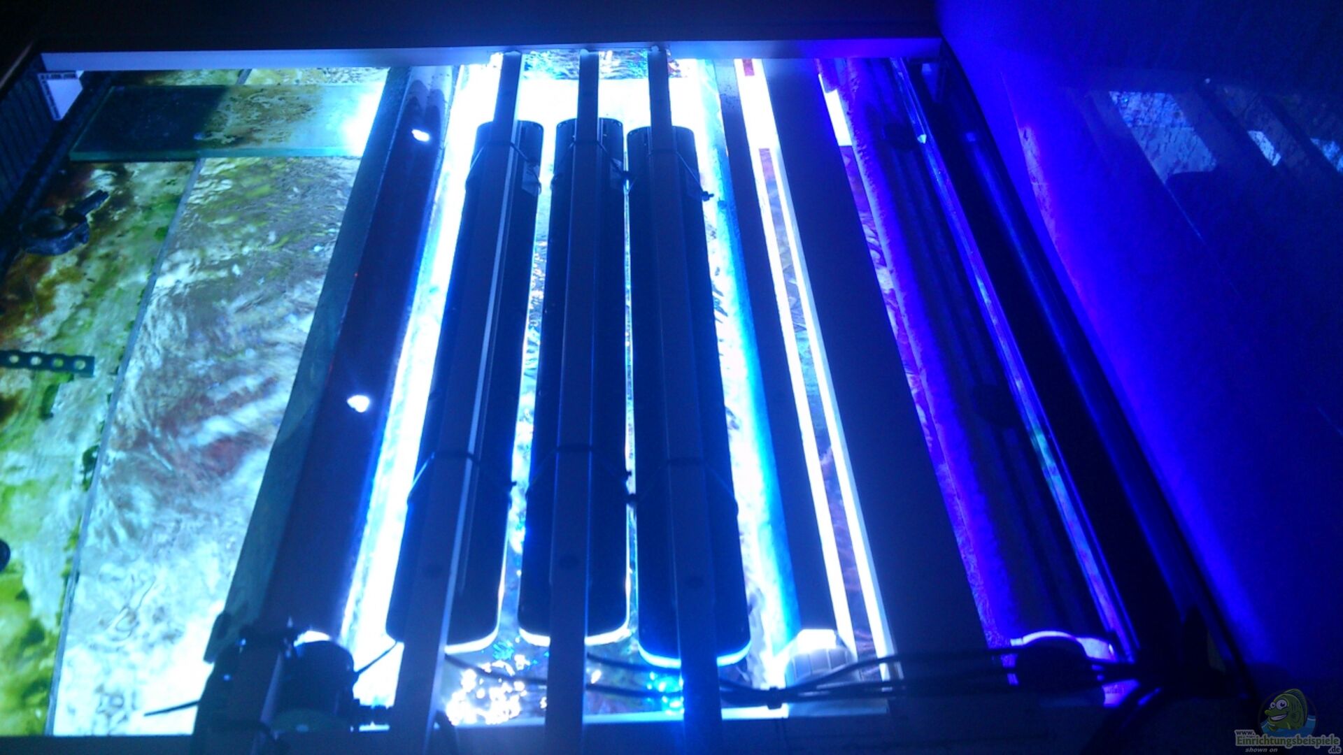 Strömungspumpen 1 x 5500 l/h Tunze nanostream 6055 (gesteuert mit Tunze wavecontroller), 1x 6500 l/h Tunze Turbelle stream 6065 sowie aquabee UP 2000/1 2000 l/h Rückförderpumpe.