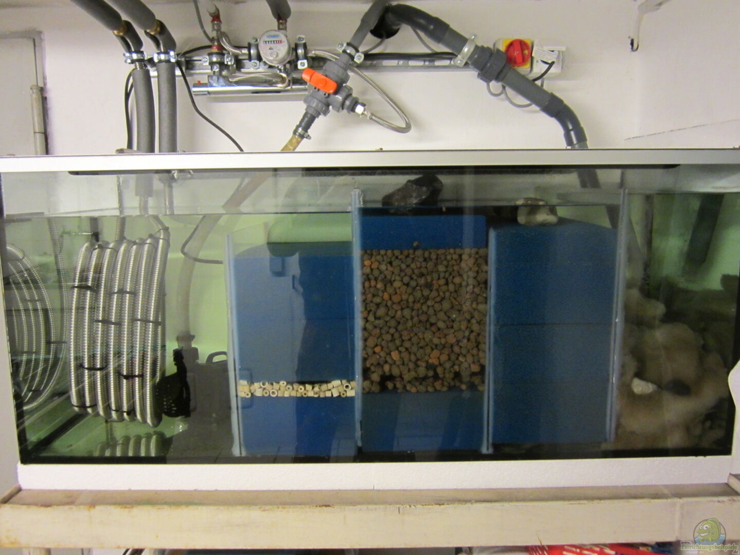 Heizung Im Winter wird das Aquarium über ein gewickeltes Edelstahlrohr durch die Wärmepumpe beheizt. Dadurch sind die Heizkosten für das Aquarium nahezu null, da ich das Becken ähnlich wie ein Heizkörper verhält und den Raum mit beheizt. Das Heizungswasser wird mittels 2-Wege-Ventil im Heizkreis zu oder abgeschaltet. Über die Hausautomatisierung wird geregelt, dass bei PV Überschuss und ausgeschalteter Wärmepumpe, das Aquarium mittels eines oder zwei 300 W Heizstäben beheizt wird. [...]