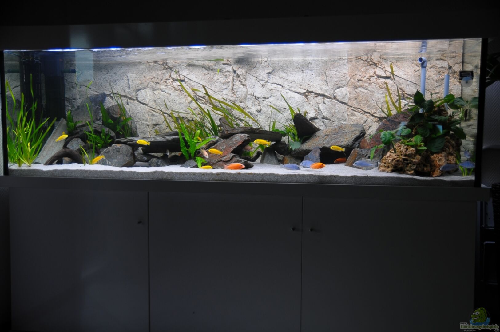 Beleuchtung : 2 T8 Röhren, die vordere Röhre ist eine Aqua-Glo der Firma Hagen.Die hintere Röhre ebenfalls.Beide Röhren sind mit Alufolie abgedunkelt und zum Teil mit blauer und grüner Folie umwickelt.Beide Röhren haben 36 watt. Aquarium: 12mm Sicherheitsverglasung sowie Verklebung. Bodenbereich 2 Bohrungen für Pumpensystem. Bodenplatte habe ich eine 20mm Styrodurplatte eingelegt für den Steinaufbau Da wir gerade ein Haus gekauft haben, wollten wir es dem Wohnzimmer anpassen. Wei?? [...]