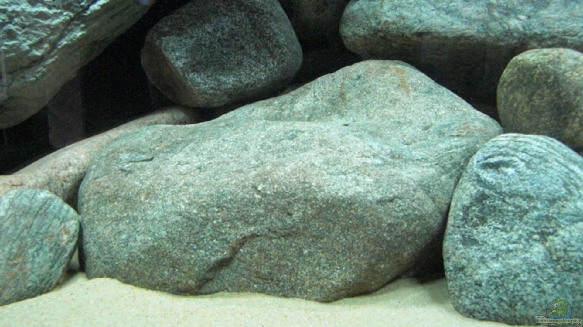 200 kg Findlinge . Die Steine stehen auf einer 2 cm dicken Styroporplatte. Schawrze Rückwandfolie. BTN Modul ( es wurde ein loch gebohrt so dass die fische durch schwimmen können)