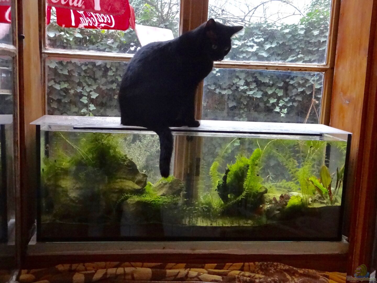 Das Becken ist ma??gefertigt, damit es genau ins Kastenfenster hineinpasst. Da die Fenster schon älter sind, wird das Aquarium sowohl jahreszeitlichen wie auch täglichen Temperaturschwankungen unterliegen.