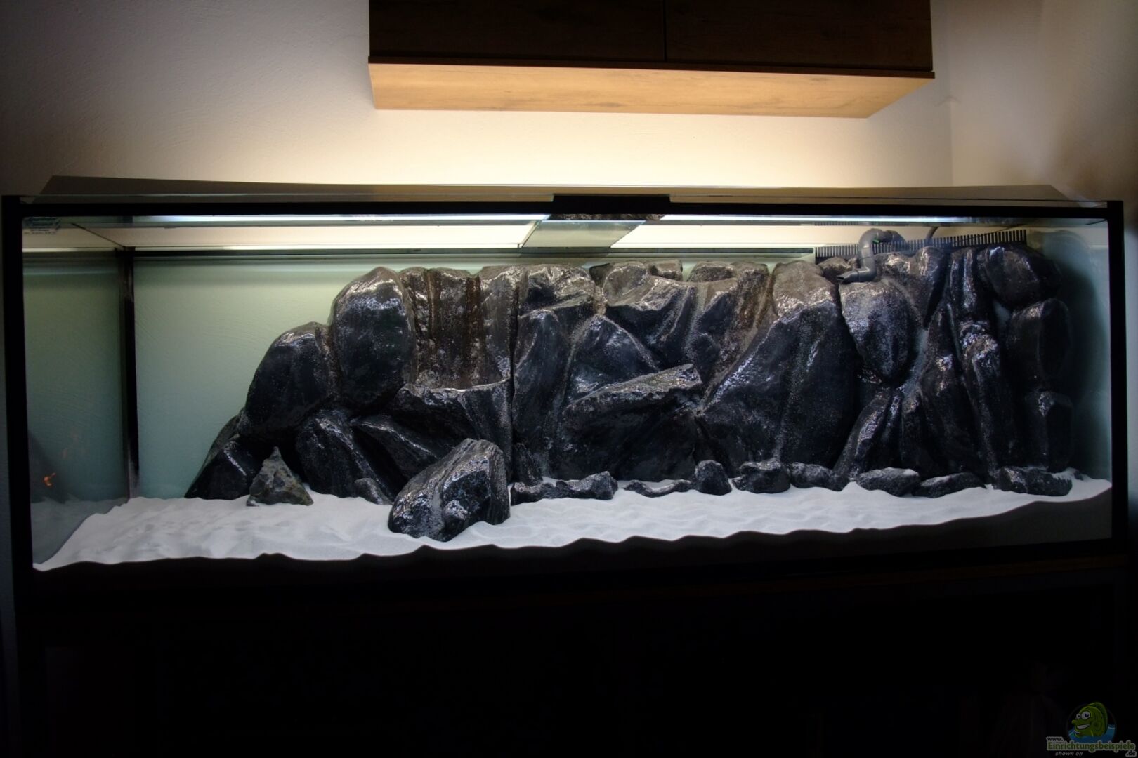 Selbstgebaute 3d Rückwand und Steinterrasse aus Styropor. Die Rückwand besteht aus 3 Teilen und mehrere kleine und gro??e Steine. Habe die Aquariumrückwand aus Holz nachgebaut um nichts am Aquarium zu beschädigen. Die Styroporplatten wurden mit Cuttermesser und Hei??luftfön in Form gebracht und an das Aquarium angepasst, auch Höhlen und ??berstände wurden mit eingeplant. Als nächster Schritt wurde alles mit Zement überzogen und zum austrocknen stehen gelassen (das ganze Szenario [...]