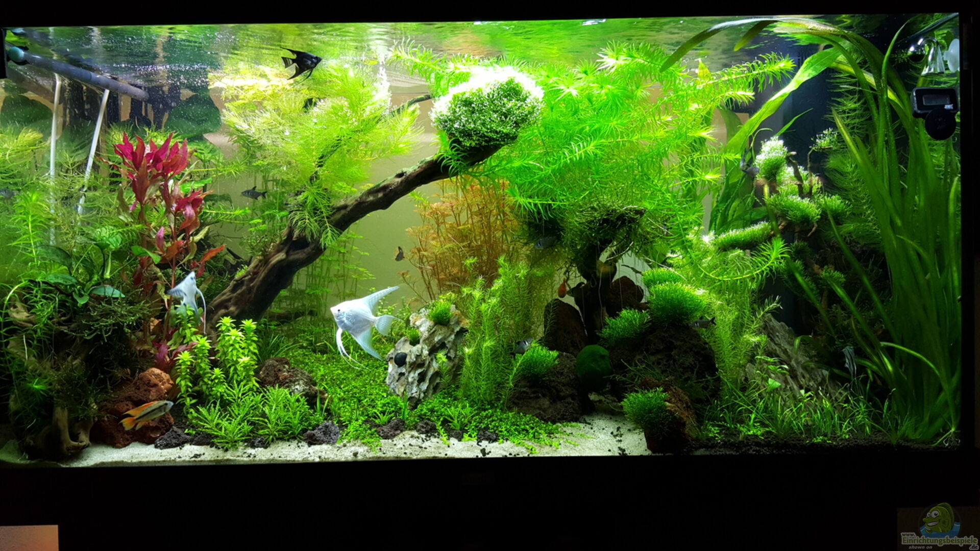 Das Hardscape wurde primär aus Islandlava/Drachenstein und Moorwood gestaltet. Die Lava wurde auf der linken Seite so angeordnet, dass diverse Versteckmöglichkeiten entstanden sind. Auf der rechten Hälfte des Beckens wurde eine kleine Schlucht aus der Lava gestaltet und darüber eine Wurzel platziert, damit auch hier ein Unterstand für meine Bewohner vorhanden ist. Durch den Einsatz von Sand, Schieferplatten und diversen Kleinkram, ist unter dem Innenfilter eine weitere Bruthöhle entstanden. [...]