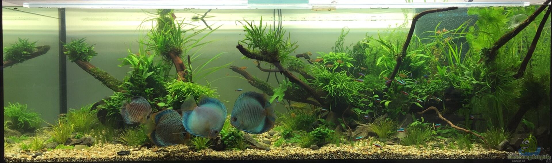Das Becken ist eine Sonderanfertigung aus 12mm starken Floatglas, diamantgeschliffen und auf Sto?? verklebt. Leer wiegt es 145kg und es dauerte 20min bis es im 3.OG auf dem Schrank stand. Im rechten Bereich wurden jeweils zwei schmale Glasstreifen (Dicke 5mm) zur Aufnahme der Filtermatte des HMF eingeklebt. Zur Stützung der Matte gegen den Kies wurden auf der Bodenplatte senkrecht drei 8cm hohe Gleisstreifen gleicher Dicke geklebt. Zwischen diesen senkrechten ???Platten??? sind Spalte, sodass [...]