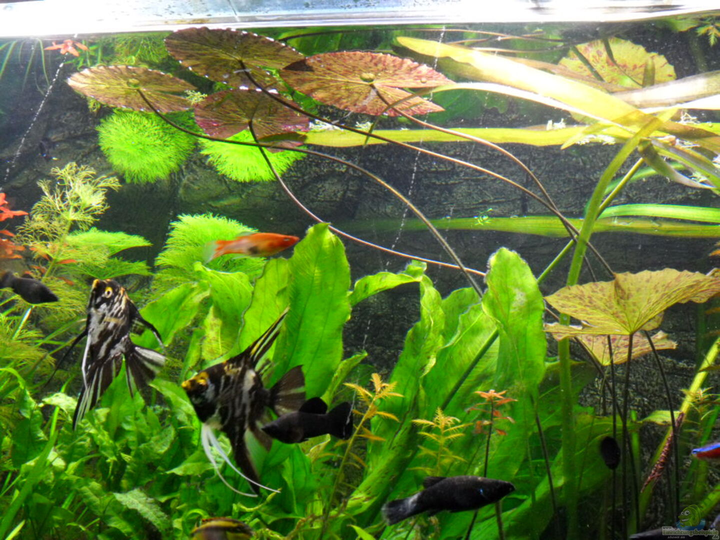 Ich fand über einen aquarienfreund jemanden, der ein gebrauchte Becken kombi loswerden wollte, zwar mit T8 leuchte aber mit unterschrank becken wo die fische meiner freundin auch platz haben. MIt gro??en Eheim 2228 und fu??bodenheizung dazu sowie anderen diversen kleinteilen.----Hochschleppen mussten es wir trotzdem selber---- Kleines unterbecken im schrank ca. 110 liter. Beide Becken sind abgedeckt mit 4mm Glasscheiben.