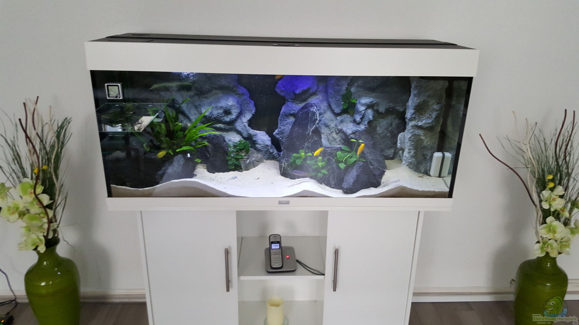 Die Rückwand würde von mir eigenständig aus Styropor, Fliesenkleber, acrylhaltigen Wandfarben und 2K Kunstharz erstellt und nach mehreren Wochen ausdünsten und regelmä??igen wässern im Aquarium verbaut.