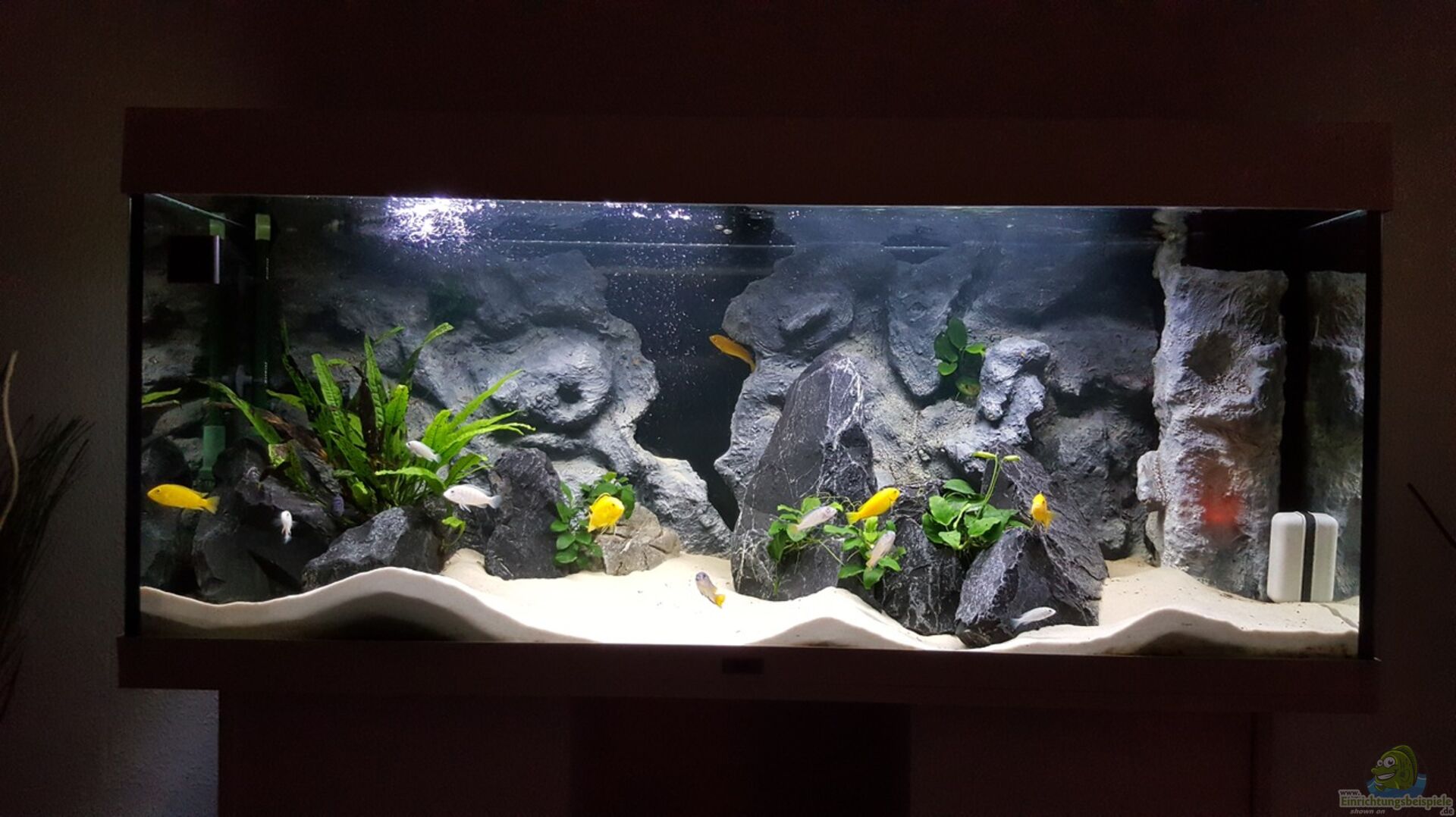Die Rückwand würde von mir eigenständig aus Styropor, Fliesenkleber, acrylhaltigen Wandfarben und 2K Kunstharz erstellt und nach mehreren Wochen ausdünsten und regelmä??igen wässern im Aquarium verbaut.