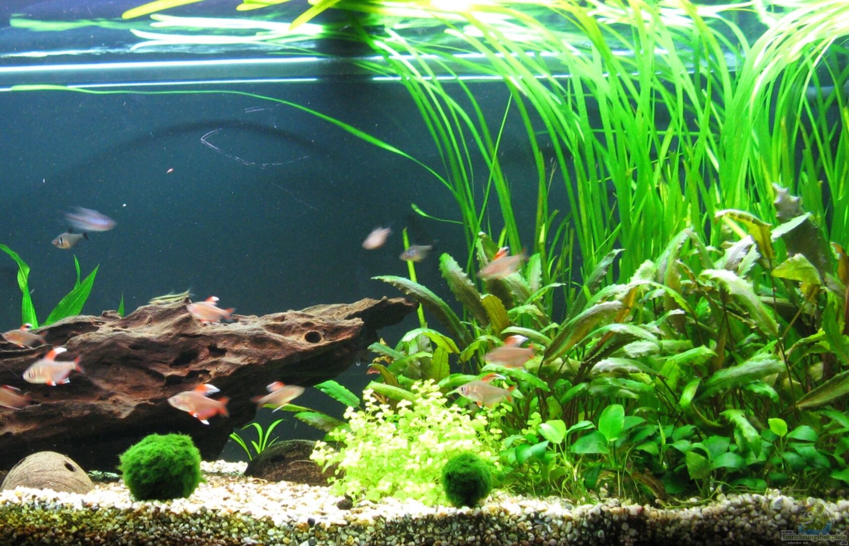 Ziel ist es, in der rechten Beckenhälfte einen dichten Wasserpflanzendschungel zu bilden, welcher auch den Filterkasten verdeckt. Die Vielfalt der Pflanzen wird in den nächsten Monaten nach und nach erhöht. Die linke Seite wird von der Mangrovenwurzel und einer grossen Solitärpflanze (Echinodorus bleheri) dominiert. Links vorne wird das Becken mittels Schwimmpflanzen abgedunkelt. Hintergrund: - Vallisneria americana, wuchert enorm, Ausdünnung jede Woche notwendig - Echinodorus bleheri, [...]