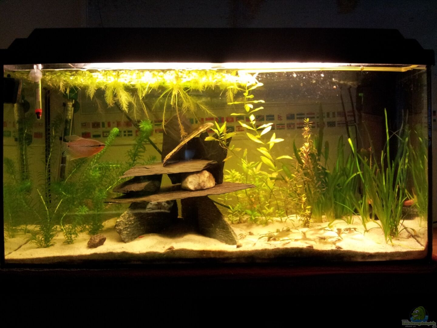 96 Liter Becken mit Mosaikfadenfischmännchen im Vordergrund von WittaMine