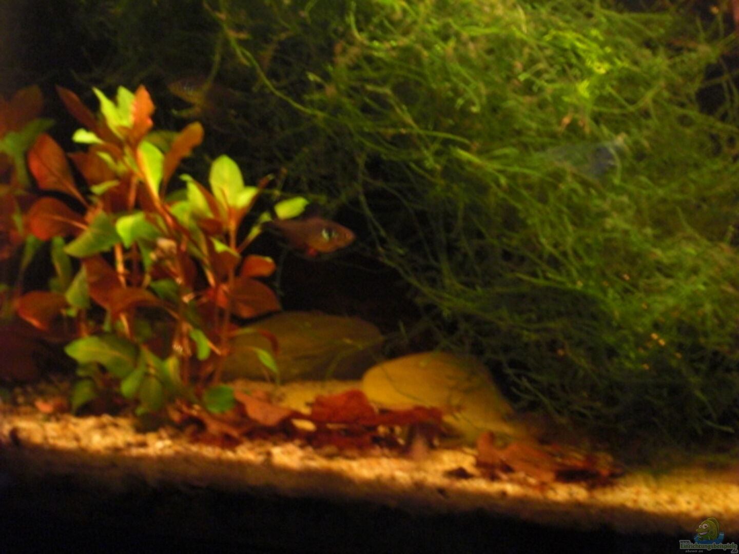 Echinodorus bleherae Alternanthera rosaefolia Taxiphyllum barbieri (auf Wurzel gebunden) Echinodorus bolivianus Microsorum pteropus "Windelov" (auf Wurzel gebunden) Schwimmpflanze: Muschelblume