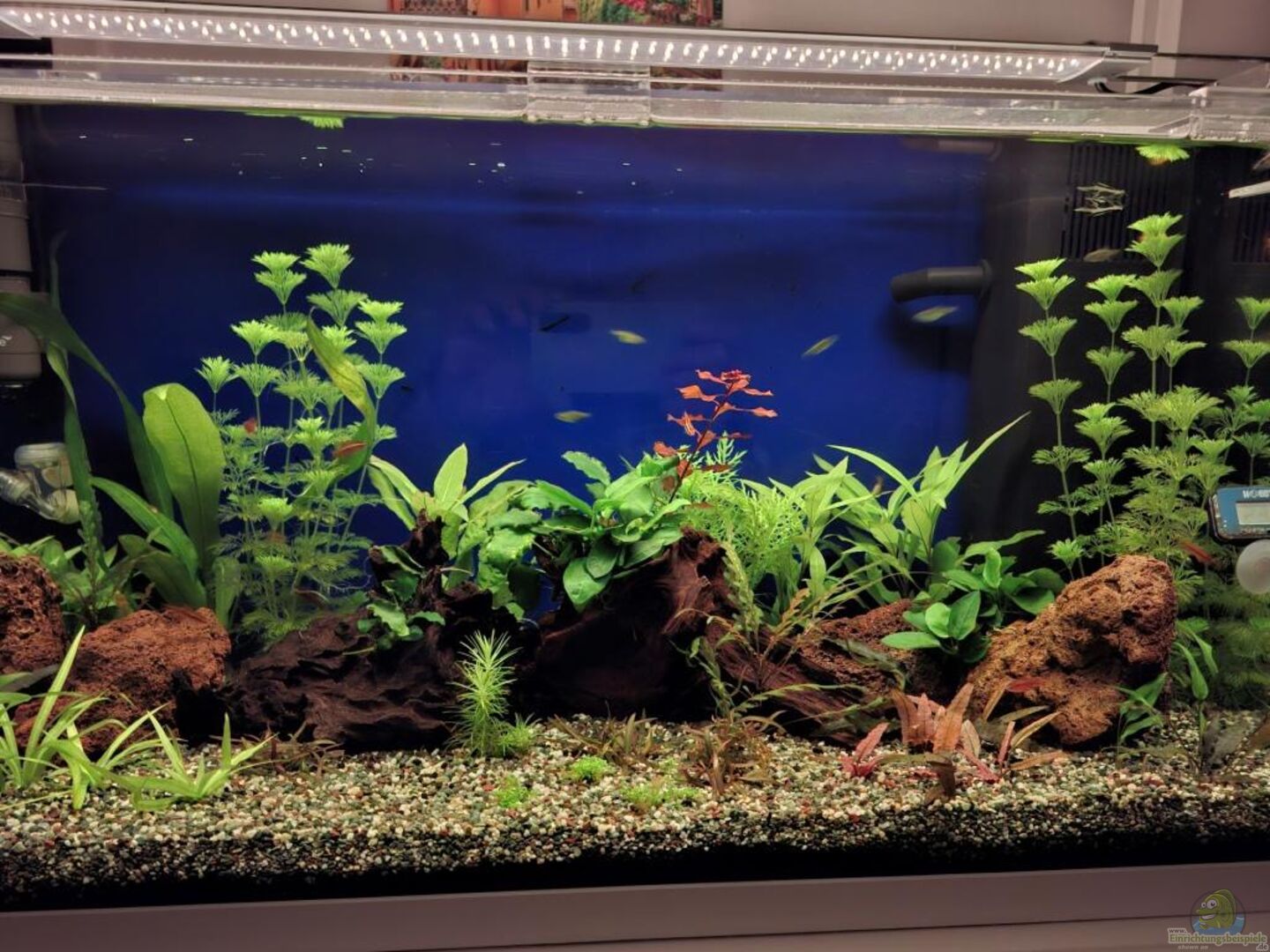 Ursprünglich als Set Juwel Primo 110 gekauft. Es wurde jedoch nur das Becken ohne Abdeckung (offenes Aquarium) mit einer Aufsetz-LED Leuchte verwendet. Der vorhandene Innenfilter wurde jedoch verwendet.