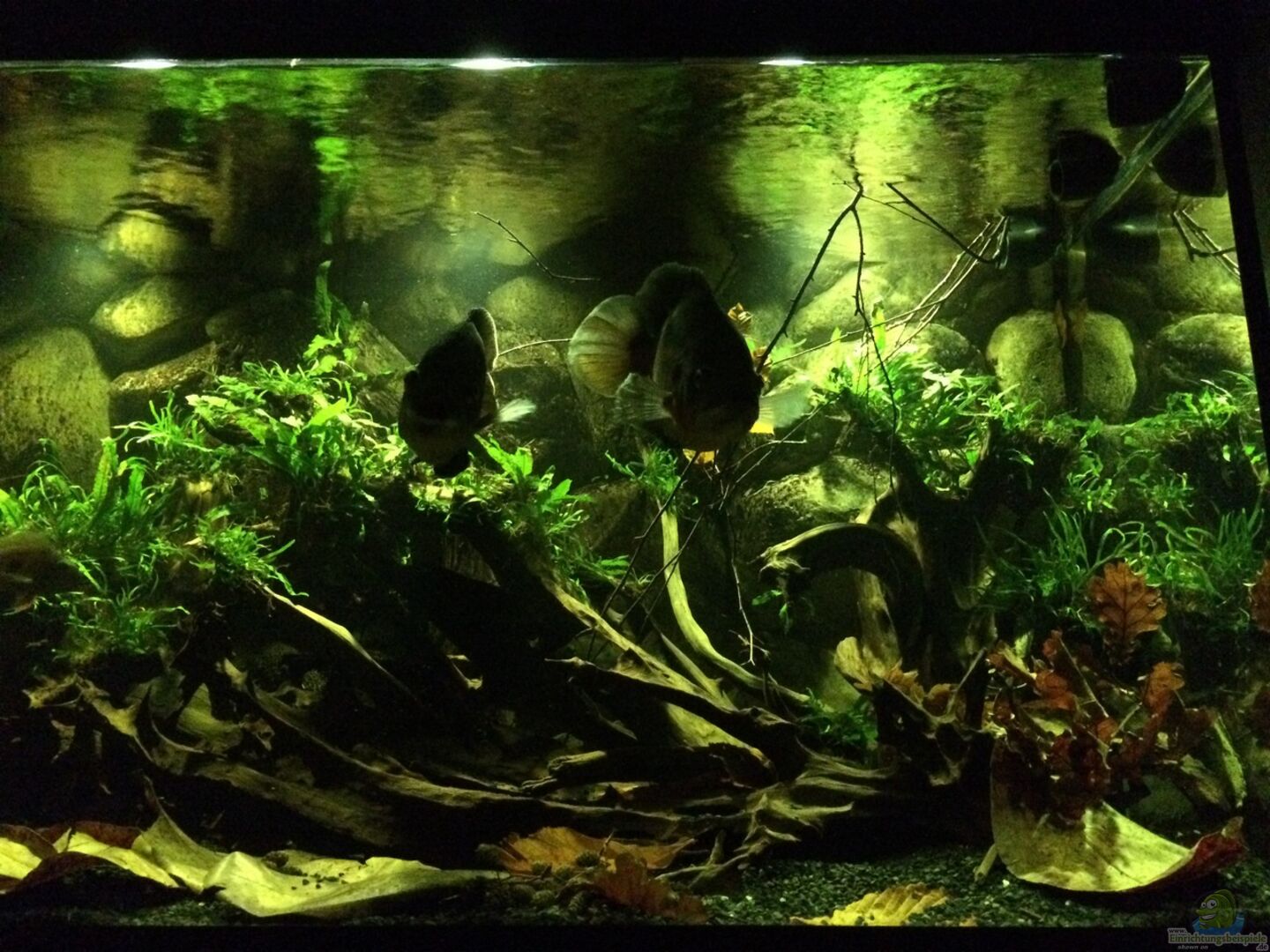 Das Becken wurde von "Brillantaquarien" gebaut, hat 2 Quer- und 2 Längsverstrebungen und ist Wulstverklebt. Auf der rechten Seite ist ein ??berlaufschacht mit 2 Kammern und 3 Bohrungen (2x 25mm 1x40mm) eingebaut. Dieser wird jedoch durch die 3D-Rückwand von "fit-im-fish" verdeckt.