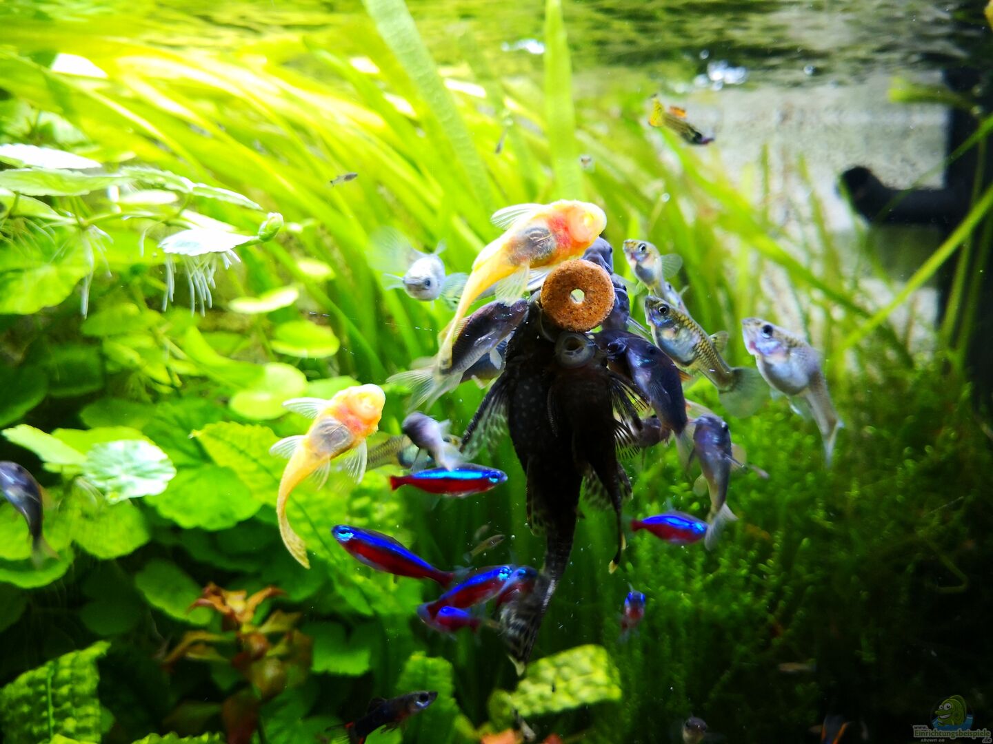Im Moment hoffnungslos überfüllt...ich wei?? - 9 Rote Neons - 10 Metall-Panzerwelse - 1 Ancistrus "Orange" - 2 Ancistrus "Gelb" - 3 Ancistrus "blau" - unkontrolliert und explosionsartig vermehrte Endler- und Galaxy-Guppys - Garnelen (Red-Rilli, Carbon-Rilli, Red-Fire, Yello-Sakura) - 2 gelbe Apfelschnecken