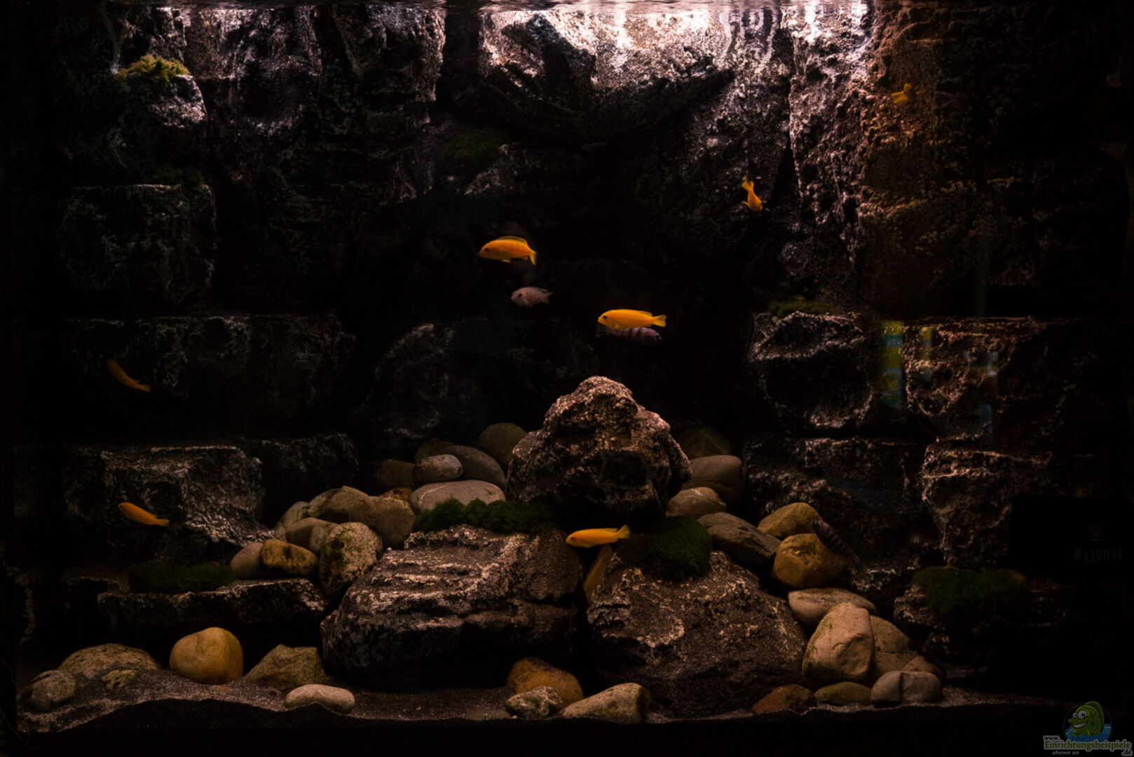 Vom Aquarienbauer incl. Abdeckung. 12mm Floatglas, Wulstverklebt in Schwarz mit Sicherheits-innennaht. Hinten rechts befindet sich ein ??berlaufschacht mit zwei Kammern und abnehmbaren Kamm. Die Frontscheibe aus Wei??glas hat ein eher seltenes Seitenverhältniss von 100cm x70cm. Das ist eine recht kurze Kantenlänge, aber die Nische in der das AQ steht hat leider nicht mehr zugelassen. Die 70 für die Höhe waren vorallem eine ästhetische Entscheidung, das mehr an Wasservolumen sollte [...]