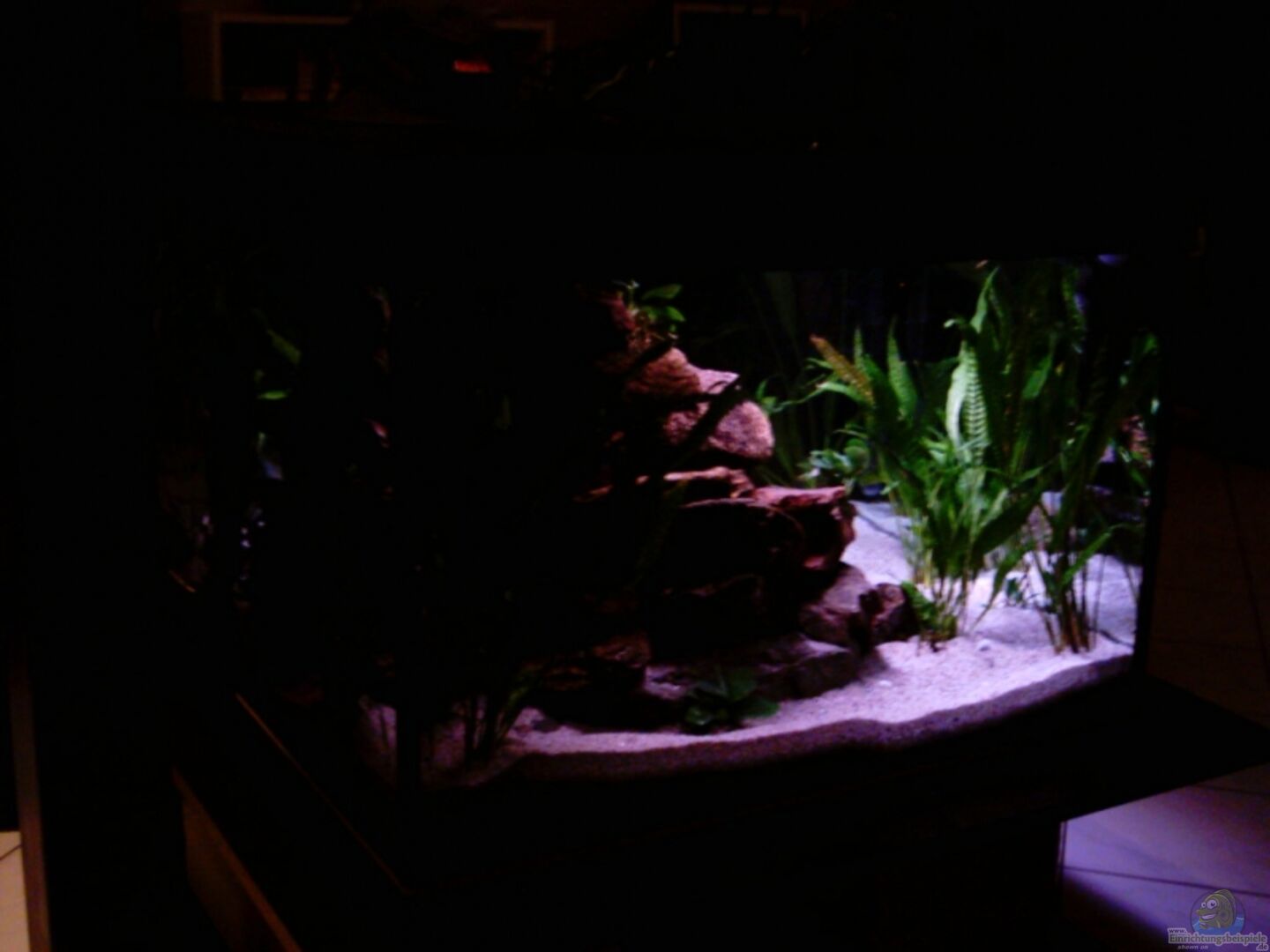 Glasstärke 10 mm Kanten geschliffen und poliert, sto??verklebt. Abdeckung: Aluprofil schwarz Unterbau aus Schalenholzplatten und Ytongsteinen. Unter dem Becken und der Bodenplatte je eine 10mm Plastazoteplatte als Unterlage. 8mm Plexiglasscheiben als Bodengrund zum Schutz der Glasscheibe.