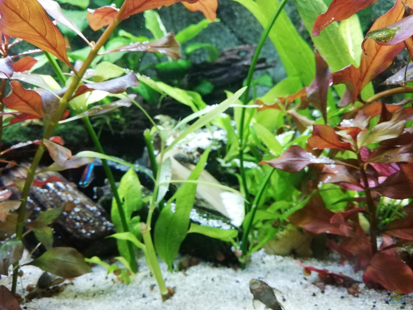 Gemischt ....die namen der pflanzen weiss ich leider nix so genau.....rote kleine und grosse...asia farn....wassergras riesen valinere glaub ich und dann so art Wasserbambus und und etwas wasserfreund und so hoch wachsende mit kleinen blättern aber kräftig grün und so art farn aber wächst nicht nach oben sondern in die breite und hat richtig harte grüne blätter die roten mit mittelgrossen blättern wachsen sehr schnell nach oben und aus dem wasser raus....dann teile ich die und setze die obere [...]