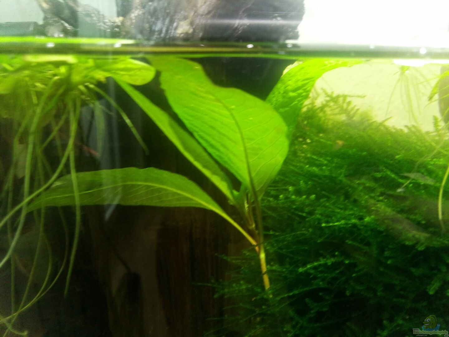 #1 Bei diesem Zuchtprojekt habe ich eine gro??e Matte Weeping Moos im Rechten Bereich reingelegt als Unterschlupf und Versteck der Jungtiere. Ansonsten sin Schwimmpflanzen Limnobium Laevigatum zur Nährstoffaufnahme bzw. Versteckmöglichkeit drin. Speziell bei diesem Zuchtprojekt habe ich noch einen Ableger der Hygrophila corymbosa in das Moos gesteckt. Die Keilpfleckbärblinge legen Ihre Eier an gro??blättrige Pflanzen ab.