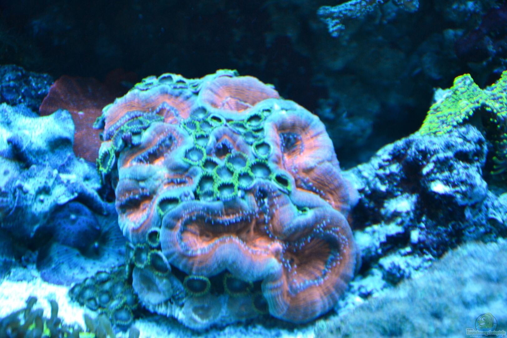 Fische: Amphiprion percula (Paar) Ecsencius bicolor Acanthurus olivaceus Chromis viridis Labroides dimidiatus Muschel: Tridacna spec. SPS: Montipora folioga Acropora plumosa Acropora spec. diverse Pocillopora damicornis Seriatopora caliendrum Seriatopora hystrix Stylophora subseriata LPS: Acanthastrea sp. Favites sp. Fungia sp. Pavona cactus Lobophyllia hemprichi Trachyphyllia geoffroyi Tubipora musica Weichkorallen: Capnella [...]