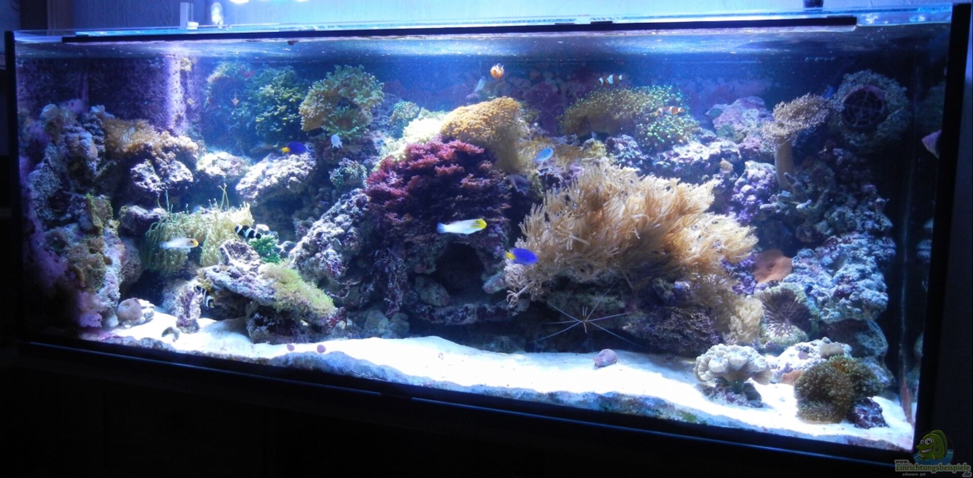 8 mm dickes Glas. Fronscheibe in Weissglas. 2 Stabiglasstreifen vorne und hinten. Dienen auch zur Aufnahme der Abdeckscheiben. Diese sind auch aus Weissglass, 4 mm. Hinten links aus lebensmittelechtem Kunststoff PE eine "Filterkammer" eingebracht. Diese dient zum verstecken des Abschäumers und zur Aufnahme von "Filtermaterial", wie Lebendgesteinsreste und ein Beutel Siporax aus einem eingefahrenen Nanobecken. Die hintere Scheibe mit schwarzem Karton beklebt.