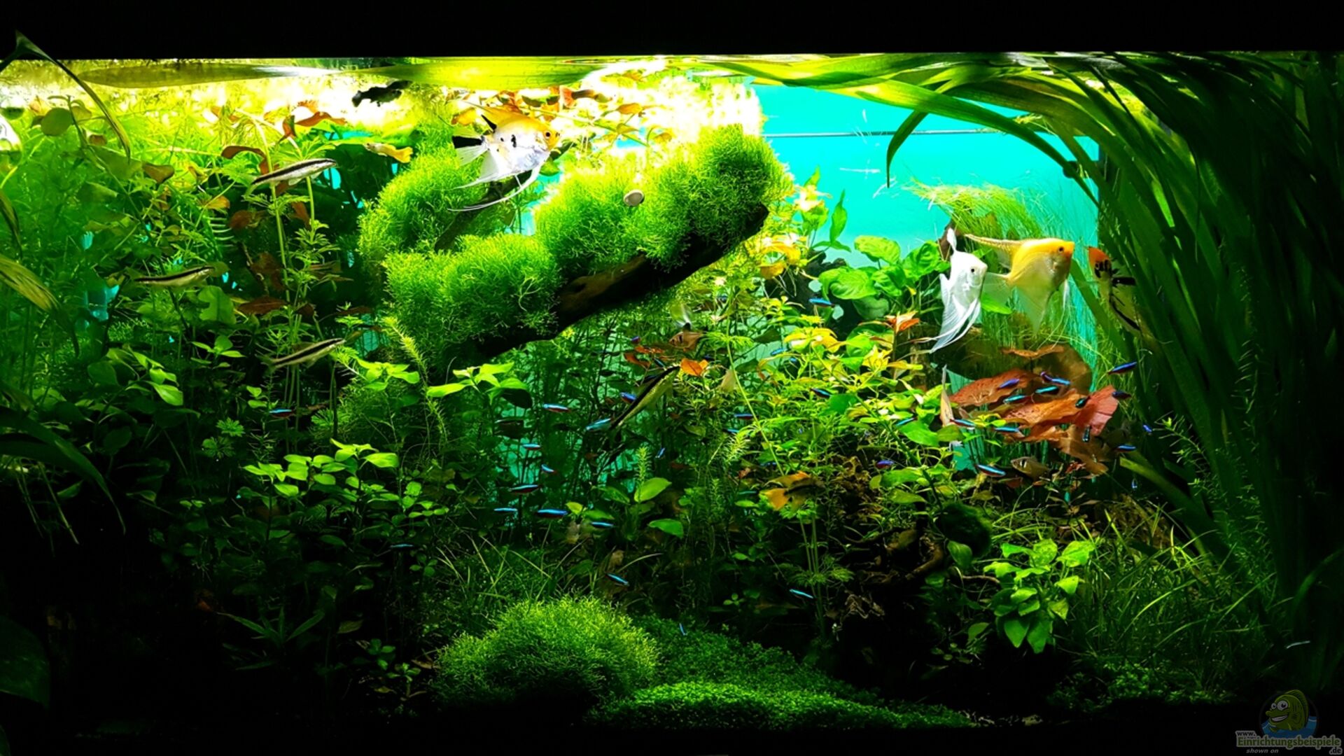 Das Hardscape wurde primär aus Islandlava/Drachenstein und Moorwood gestaltet. Die Lava wurde auf der linken Seite so angeordnet, dass diverse Versteckmöglichkeiten entstanden sind. Auf der rechten Hälfte des Beckens wurde eine kleine Schlucht aus der Lava gestaltet und darüber eine Wurzel platziert, damit auch hier ein Unterstand für meine Bewohner vorhanden ist. Durch den Einsatz von Sand, Schieferplatten und diversen Kleinkram, ist unter dem Innenfilter eine weitere Bruthöhle entstanden. [...]