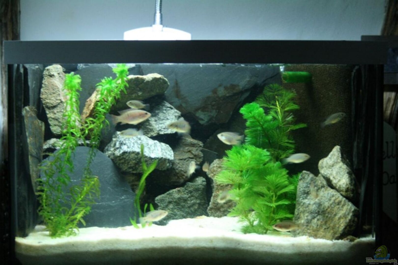 Das Becken dient als Aufzuchtbecken, und nur als Aufzuchtbecken. -----Vorübergehend mit Neolamprologus Brevis besetzt--- Aluminiumleiste an der Oberkante des Beckens sowie Rück- und Seitenwände mit Schieferplatten versehen.