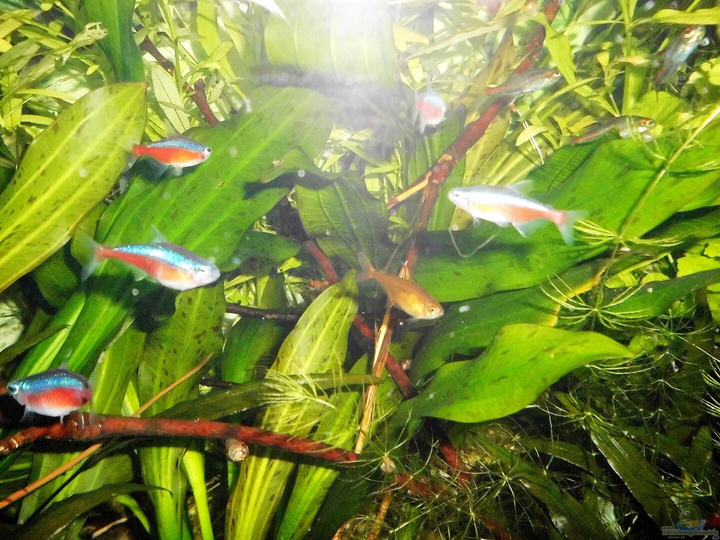4. Trauermandelsalmler (Gymnocorymbus ternitzi) + 2 eigene Nachzucht! Heimat: Schwarmfisch ruhiger Fließgewässer des Paraguay- Flusssystems Südbrasiliens. Wassertemperatur: 23-28C° pH: 5, 5 - 7, 5 dKH: 5 - 12 10.Glühlichtsalmler (Hemigrammus eryhrozonus) stand 08.05.24 Heimat: Südamerika, Lebt in lockeren Gruppen in Urwaldbächen des Essequibo-Flusssystems in Guyana. Wasserwerte: pH: 6 bis 8, GH: 0 bis 12, Temperatur: 23 bis 26C° Besonderes: Glüht nur in dunklen Becken. [...]