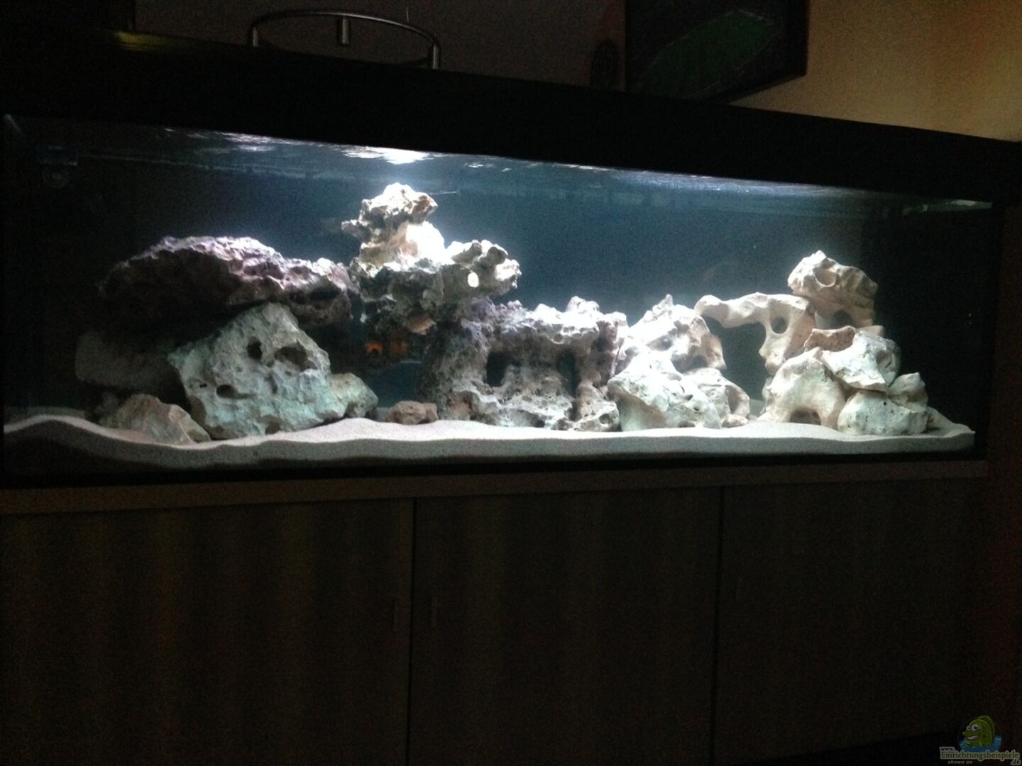 Seiten- und Rückwand schwarz beklebt bzw. gestrichen Den Unterschrank nach meinen Wünschen bearbeitet, war vorher ein Eiche dunkel Dekor was mir gar nicht gepasst hat. In die schwarz gestrichene Rückwand sind vier kleine Rechtecke eingearbeitet so das man in das Becken schauen kann. Den Fischen gefällt es auch denn sie kommen direkt neugierig angeschwommen und schauen.