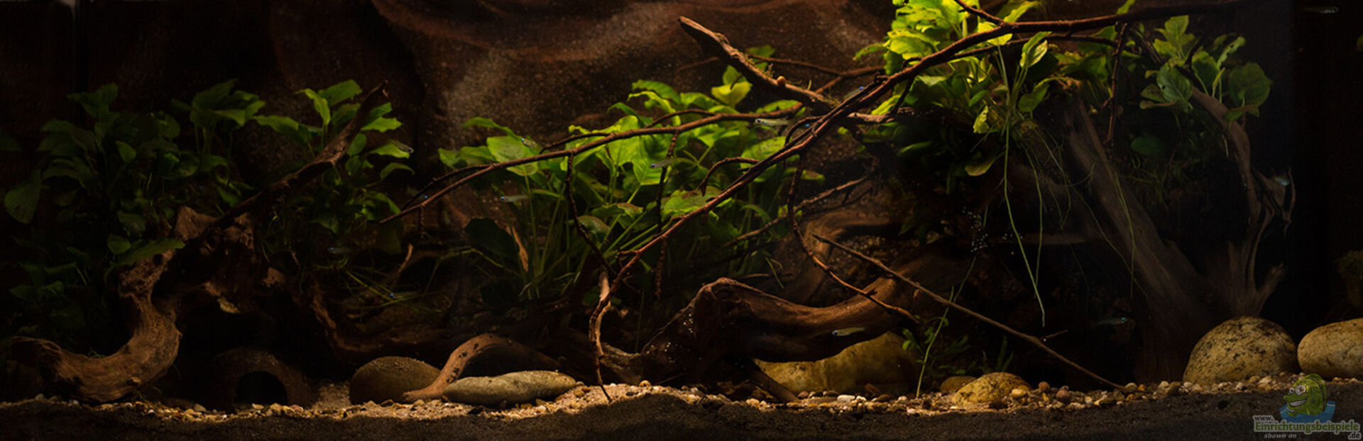 Das Aquarium ist eine Sonderanfertigung mit den Ma??en 100 x 40 x 35 und steht auf einer Kommode aus "Royal Oak". Die Rückwand wurde selbstgebaut und mit Epoxidharz versiegelt. (Einzelheiten siehe weitere Einrichtung)