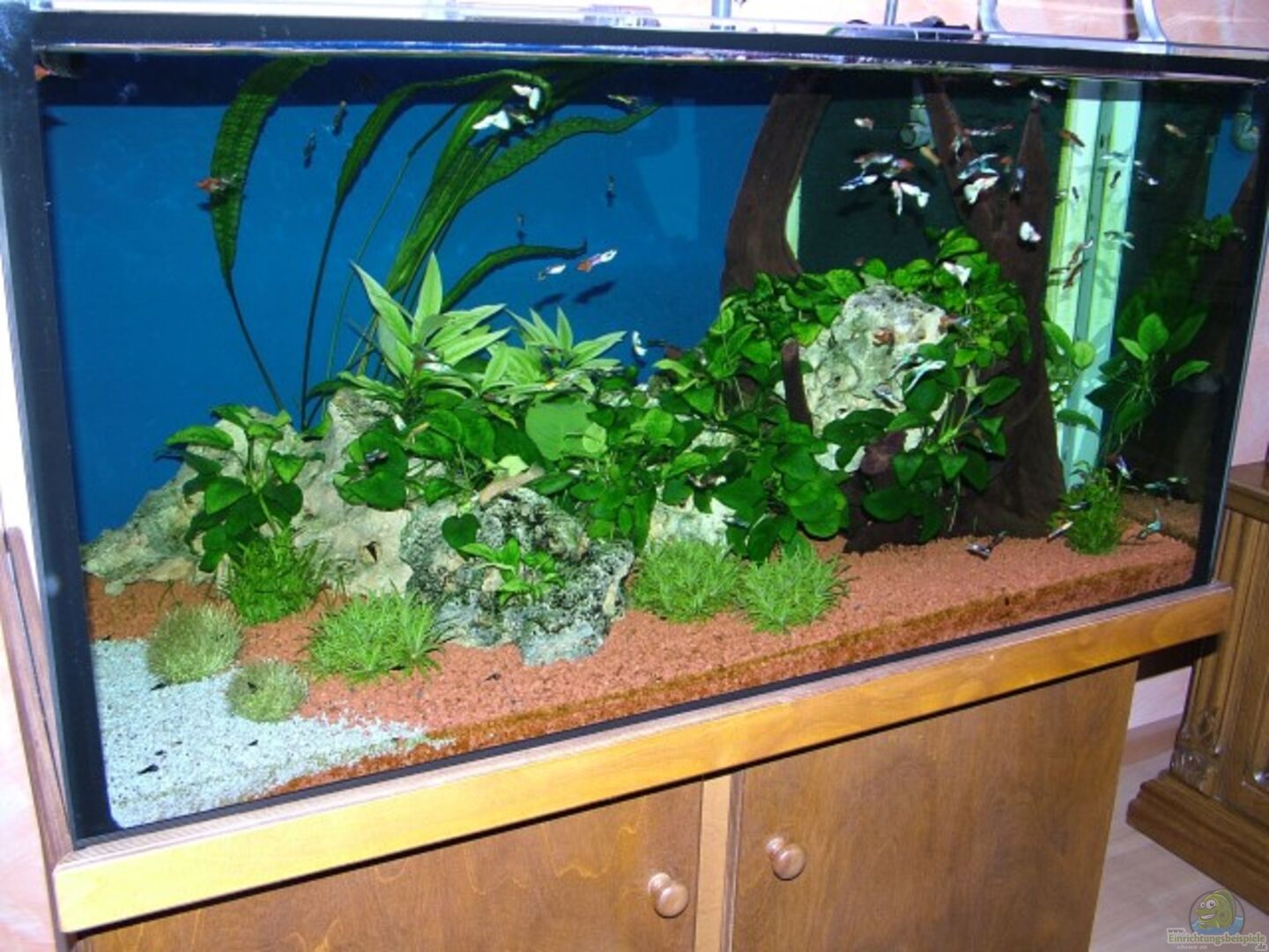 das becken besteht aus 12 mm glas.alle kanten sind geschliffen und poliert.hinten rechts befindet sich eine 35 mm lochbohrung, sie dient zum wasserablauf für das filterbecken