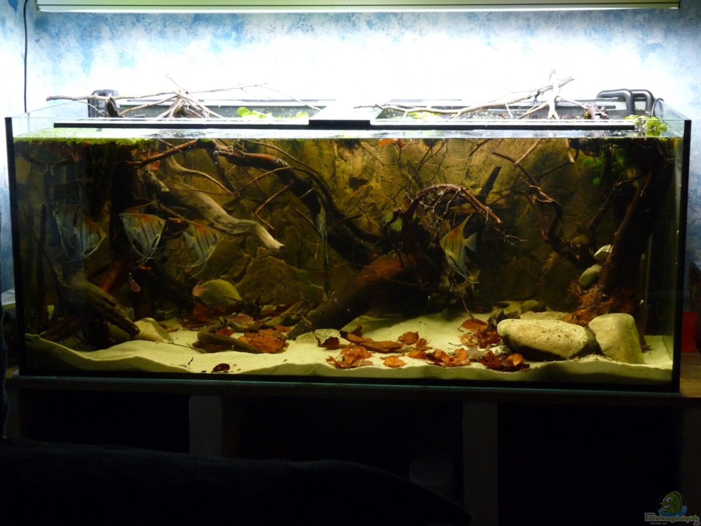 Becken wird oben offen betrieben! Zusätzlich stehen auf dem Becken noch ein paar Pflänzchen, die in Zukunft auch gerne bis ins Becken reinragen dürfen. Unterschrank ist ein Selbstbau aus Porenbetonsteinen mit einer 21mm OSB-Platte als Unterlage. Da ich in einem Altbau lebe steht es verteilt auf insgesamt 3 Balken, unter dem Unterbau aus Porenbetonsteinen sind OSB-Platten mit einer 3cm Presskorkschicht (Habe ein altes OSB-Terrarium mit dem Presskork als Rückwand zerlegt), auf diese Schicht [...]