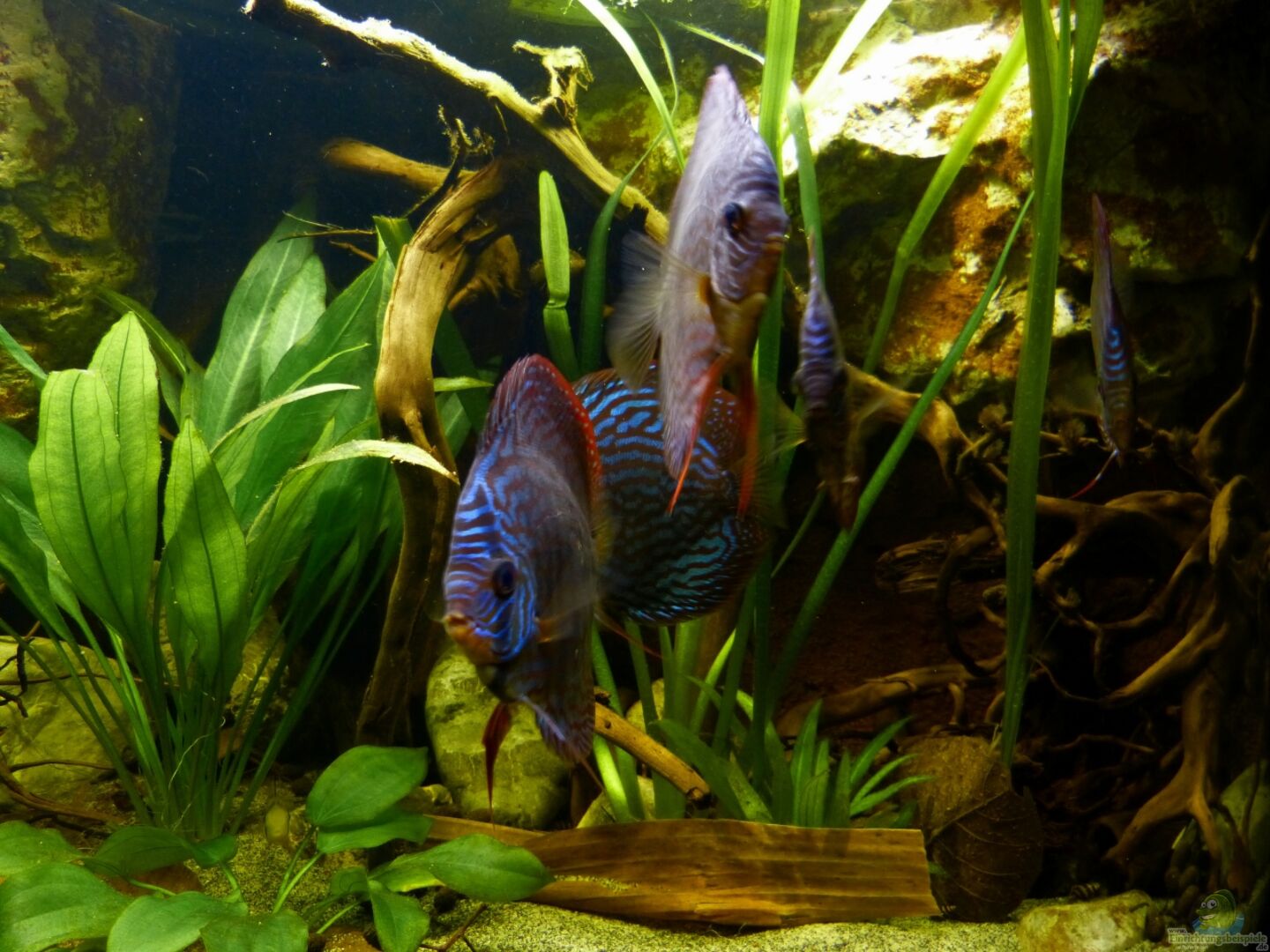 Fische: - 5 Symphysodon aequifasciatus "Rot-Türkis" ( Diskus Buntbarsch ) Beschreibung: Der Diskus wird auch als der "König der Aquarienfische" bezeichnet. Die Tiere fallen durch ihren flachen, runden Körper und die ruhige Schwimmweise auf, dies wirkt sehr majestätisch. Das natürliche Verbreitungsgebiet des Diskus liegt im Amazonas-Einzug, Peru, Kolumbien und Brasilien. Von verschiedenen Fundorten wurden leicht unterschiedlich gefärbte Tiere dazu genutzt [...]
