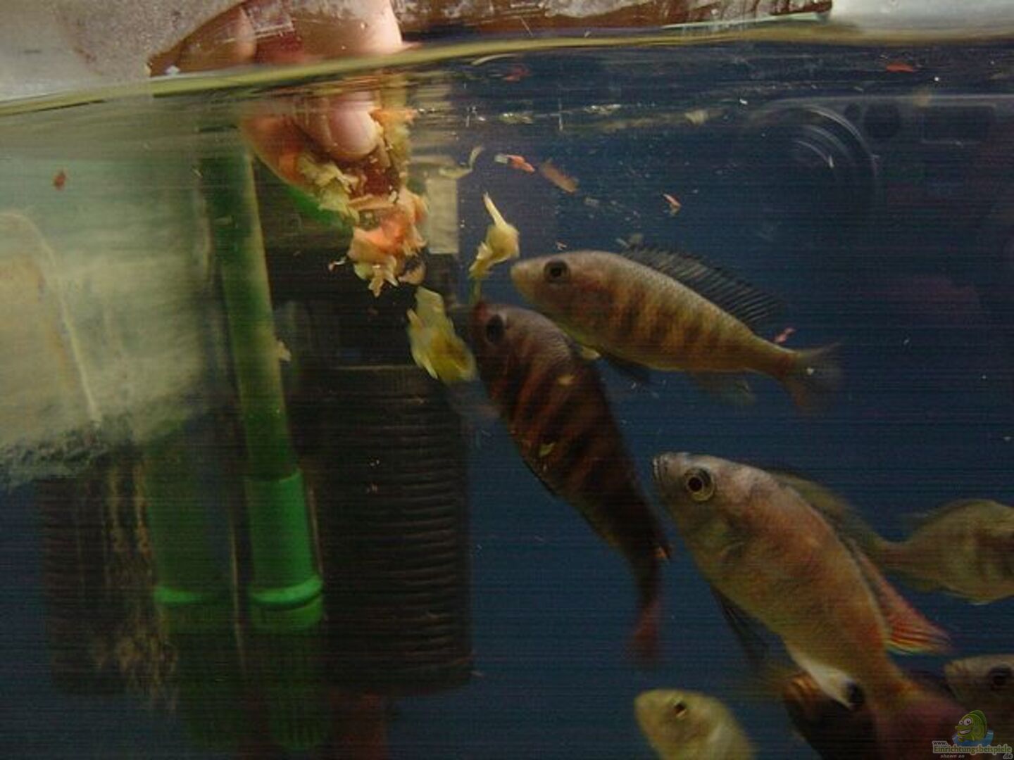 Insgesamt circa 25 Tiere Folgende Arten bewohnen das Becken -Pundamilla nyererei ´Crimson Tide´ -Haplochromis Thick Skin -Ptyochromis sp. Red Rock Sheller -Lithochromis Rupinnis- - Synodontis Multipunktatus